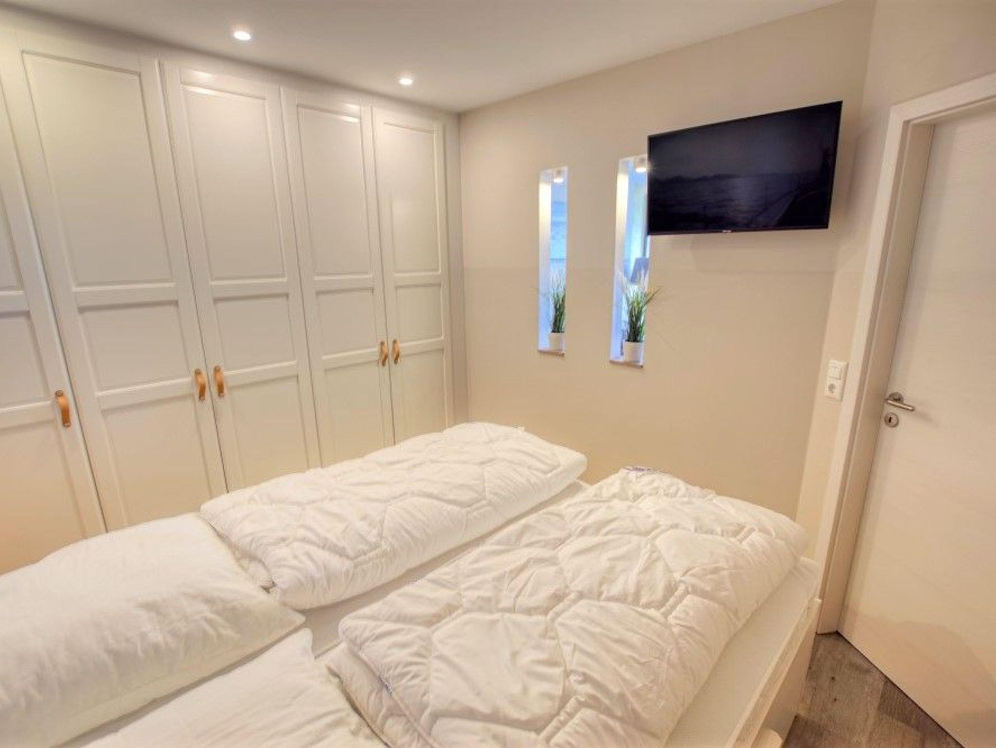 Schlafzimmer mit Doppelbett (160 × 200 cm) und TV