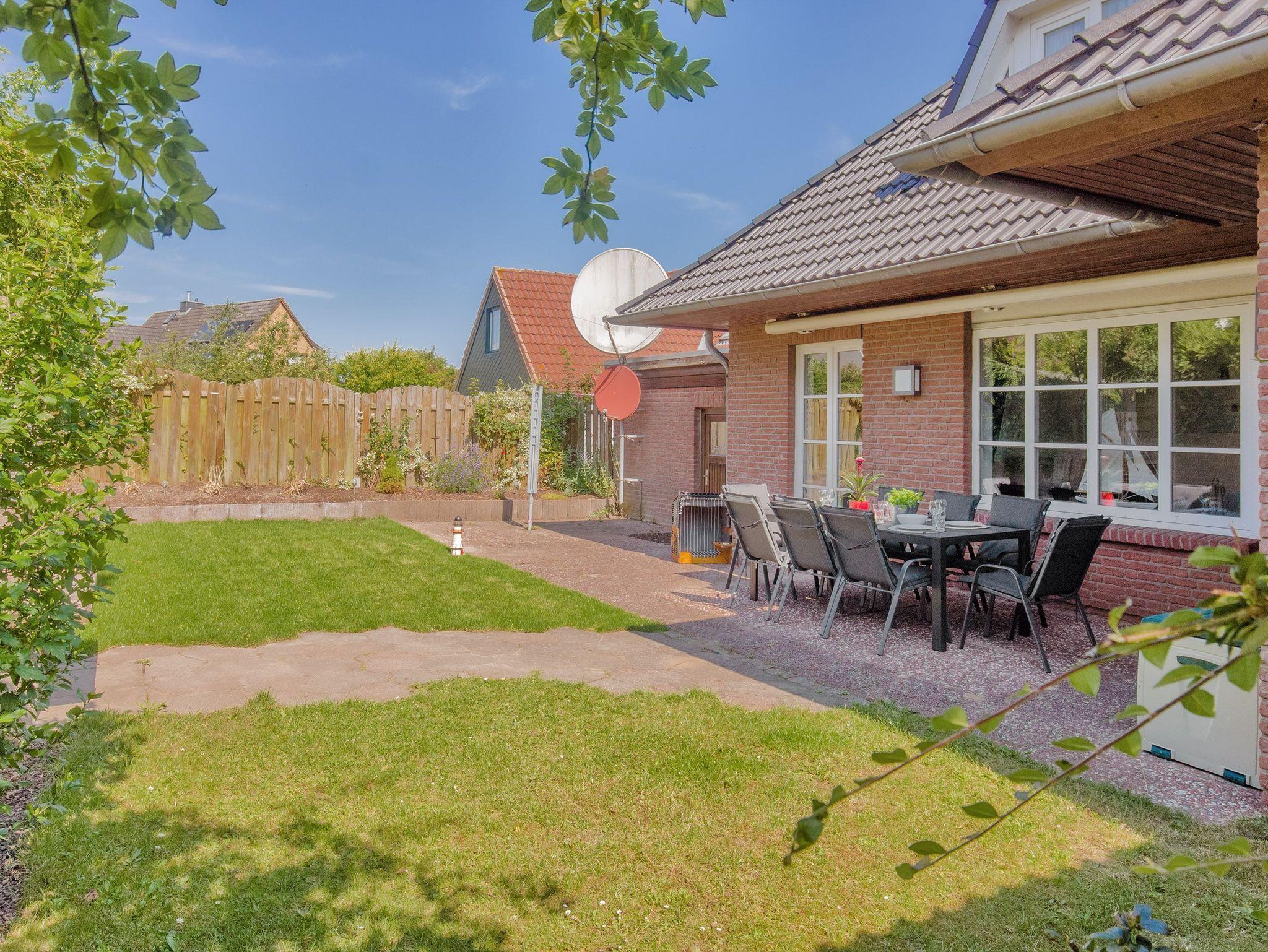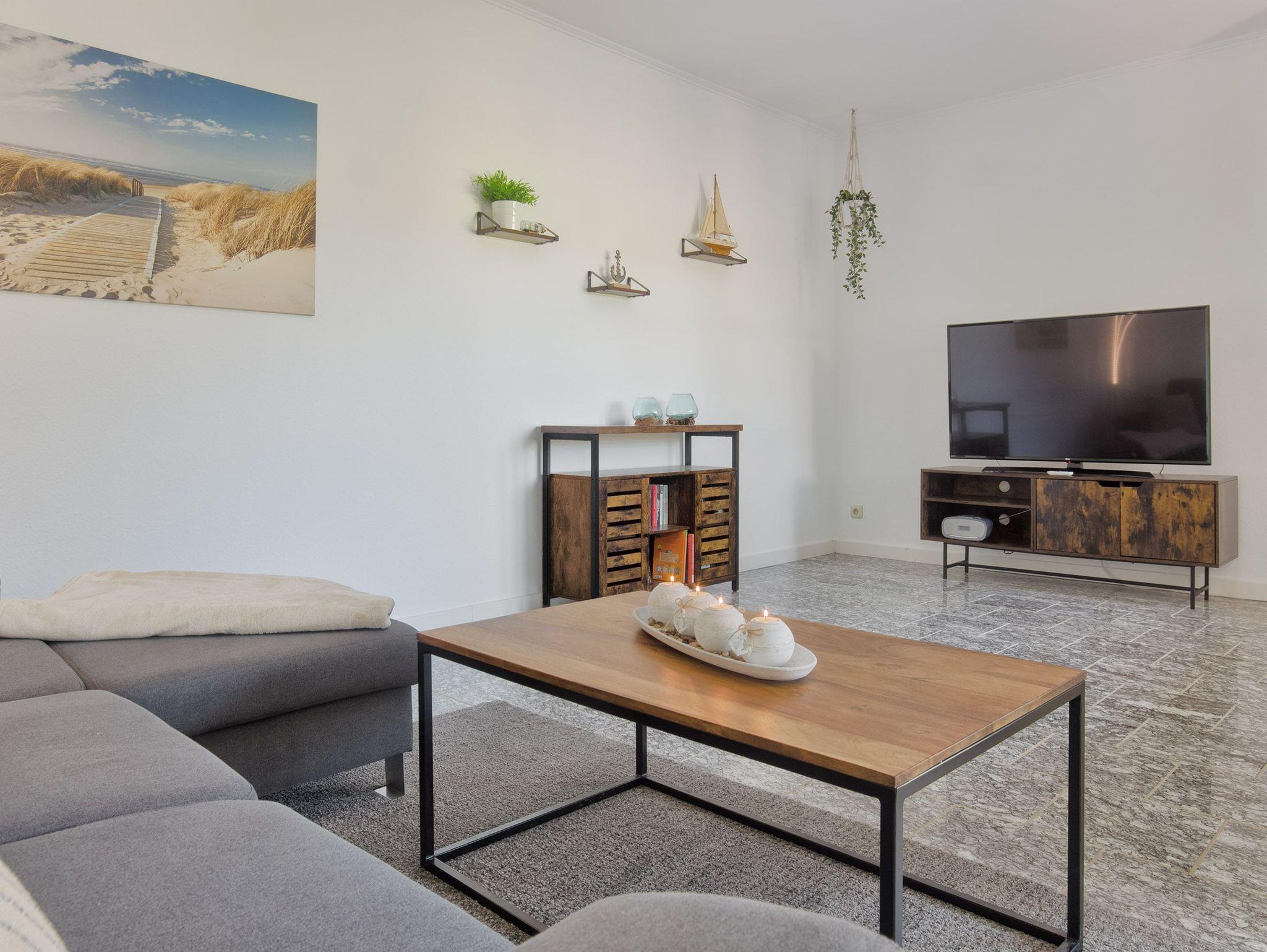 Moderne Ferienwohnung in Heiligenhafen mit Terrasse, Kaminofen und Gartenblick für erholsame Urlaubstage.
