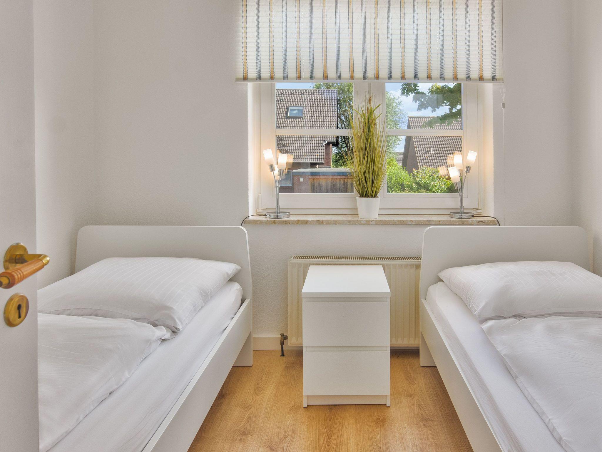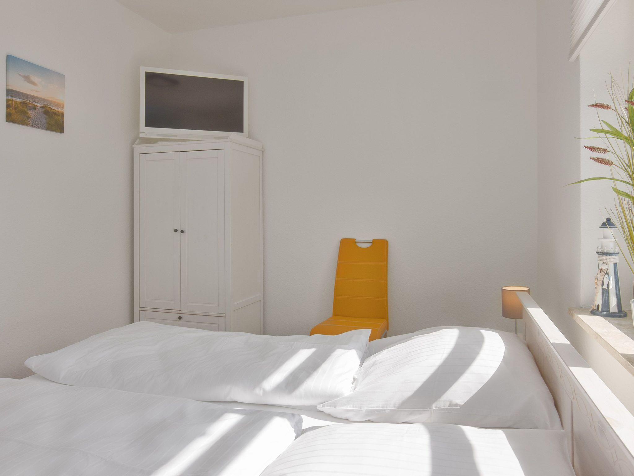 Komfortabel geht es im ersten Schlafzimmer der Wohnung weiter. Hier wartet ein einladendes Doppelbett (180x200) und TV. Das zweite Schlafzimmer hat ebenfalls ein Doppelbett (180x200) und TV, sowie der dritte Schlafraum zwei Einzelbetten (90x200). Kleiderschränke und Kommoden bieten dabei ausreichenden Stauraum.