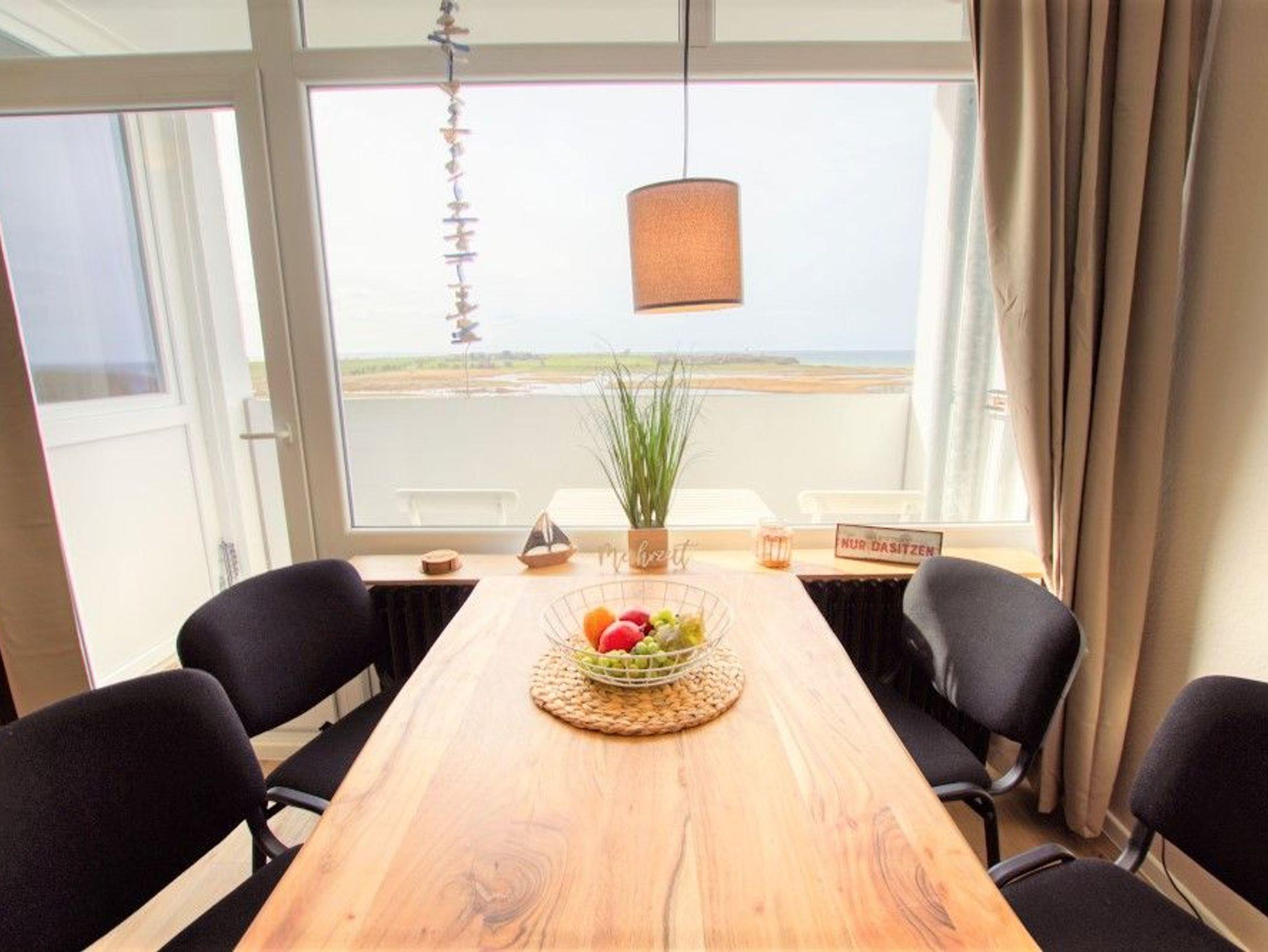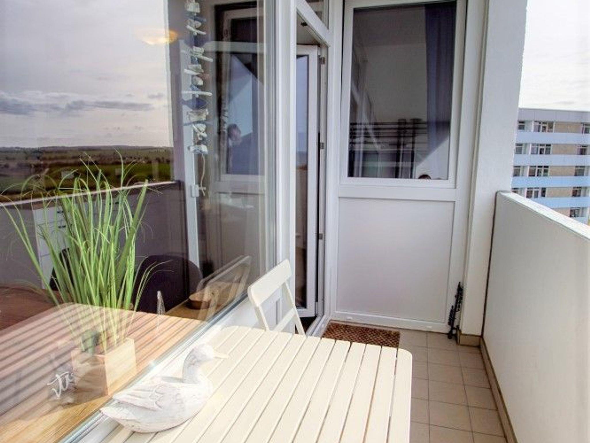 Die wunderschöne Wohnung liegt im Haus G Ferienpark, in der 7. Etage, mit Balkon zur Westseite, der einen herrlichen Blick auf die Ostsee und die Salzwiesen bietet.