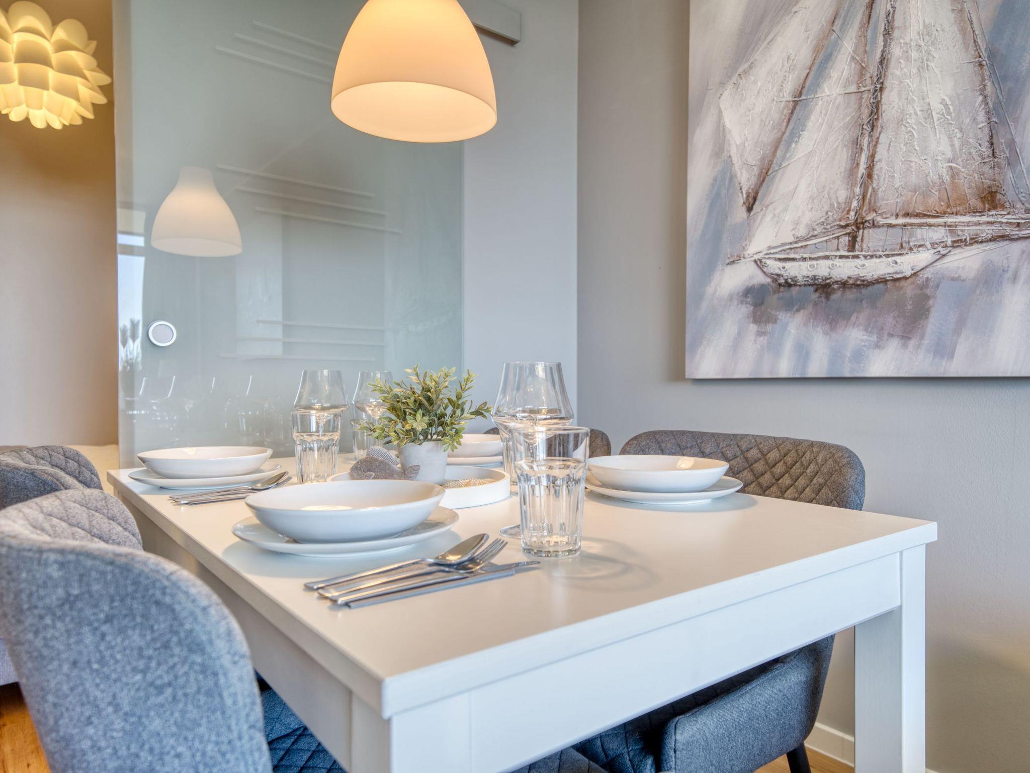 Moderne Ferienwohnung mit Ostsee- und Binnenseeblick im Ferienpark Heiligenhafen, nur 300 m vom Strand entfernt.