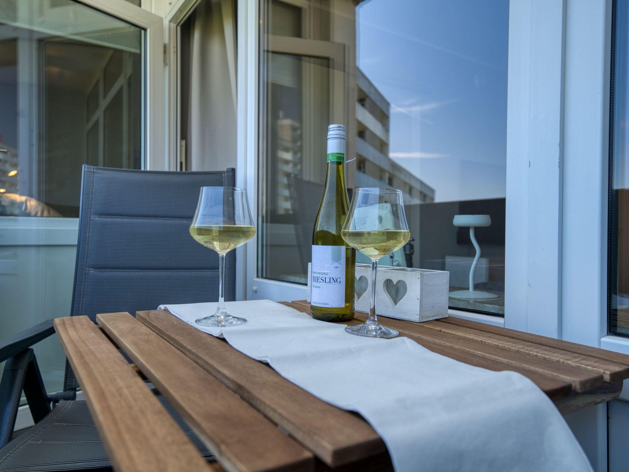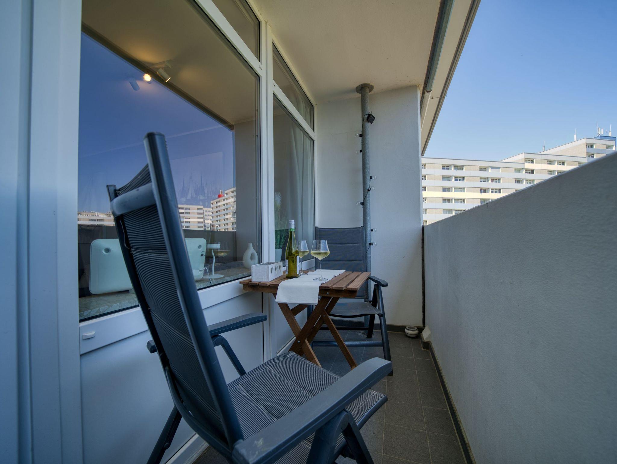 Die Wohnung liegt im Haus L Ferienpark, in der 5. Etage, mit Balkon und einem herrlichen Blick auf die Ostsee und den Binnensee.