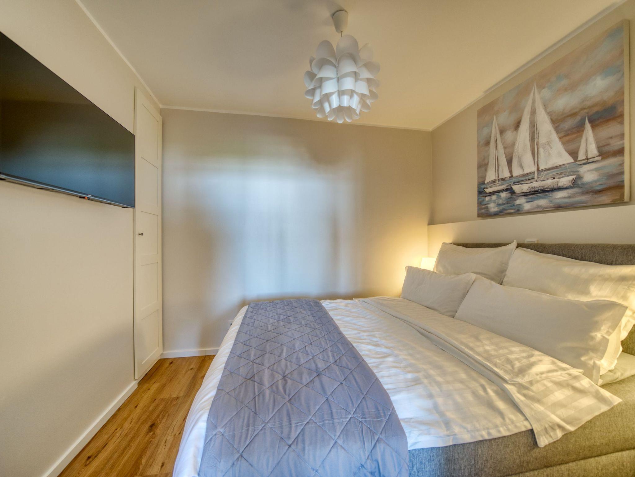 Separater Elternschlafbereich mit Doppelbett, Smart-TV und Einbauschrank