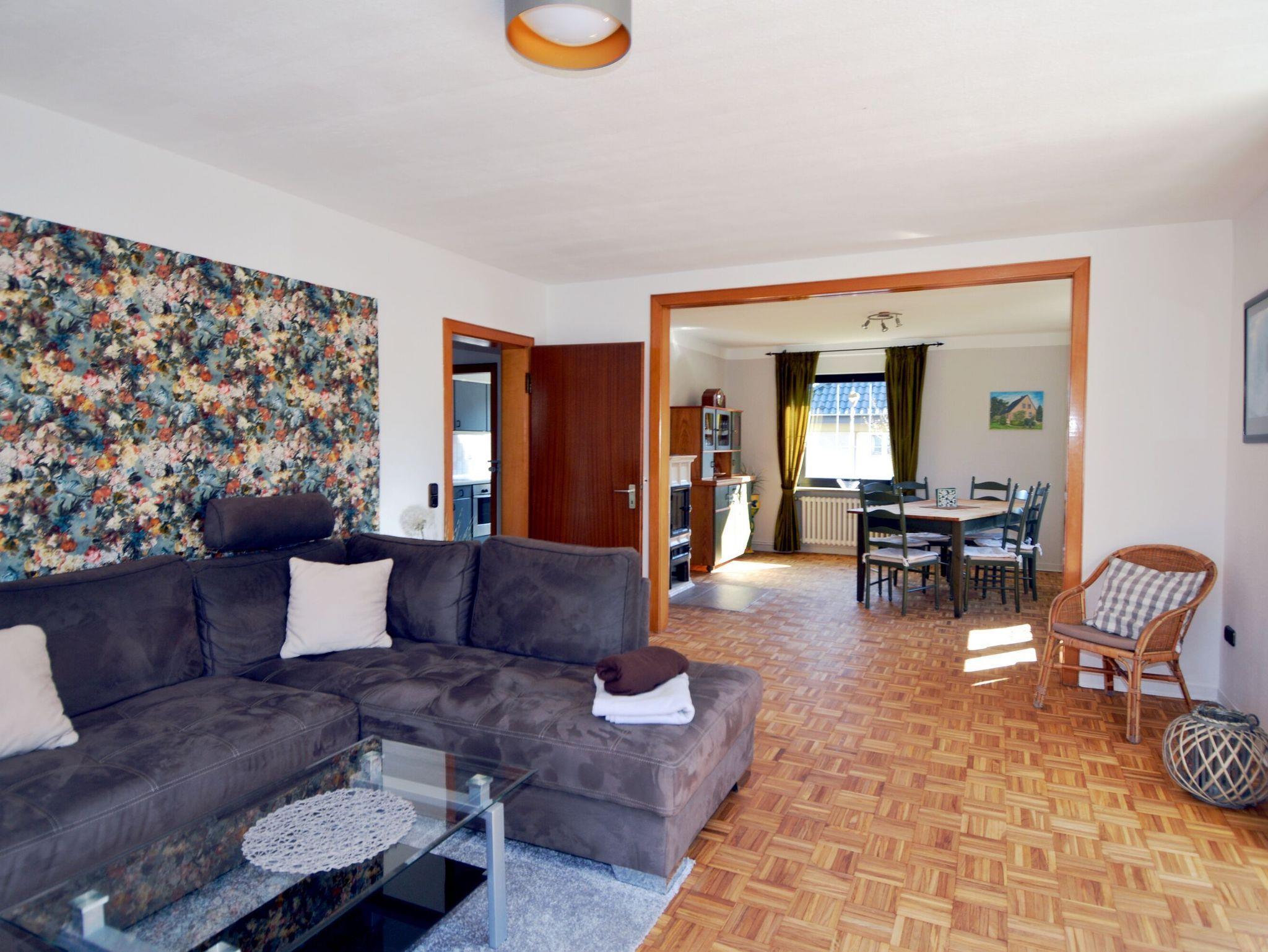 Dieses gemütliche Ferienhaus befindet sich in einem Wohngebiet in ruhiger Lage und bietet viel Platz auf 120 qm für bis zu 6 Personen. Im Erdgeschoss befindet sich der großzügige Wohn- und Essbereich mit einer großen Couch und Fernseher, großem Esstisch und Kaminofen (ohne Holzvorrat). Dem Wohnzimmer angegliedert ist eine großzügige Terrasse mit Gartenmöbel. Weiterhin befinden sich die Küche, das Gäste WC und ein Schlafzimmer (Bett 140x200) im EG.