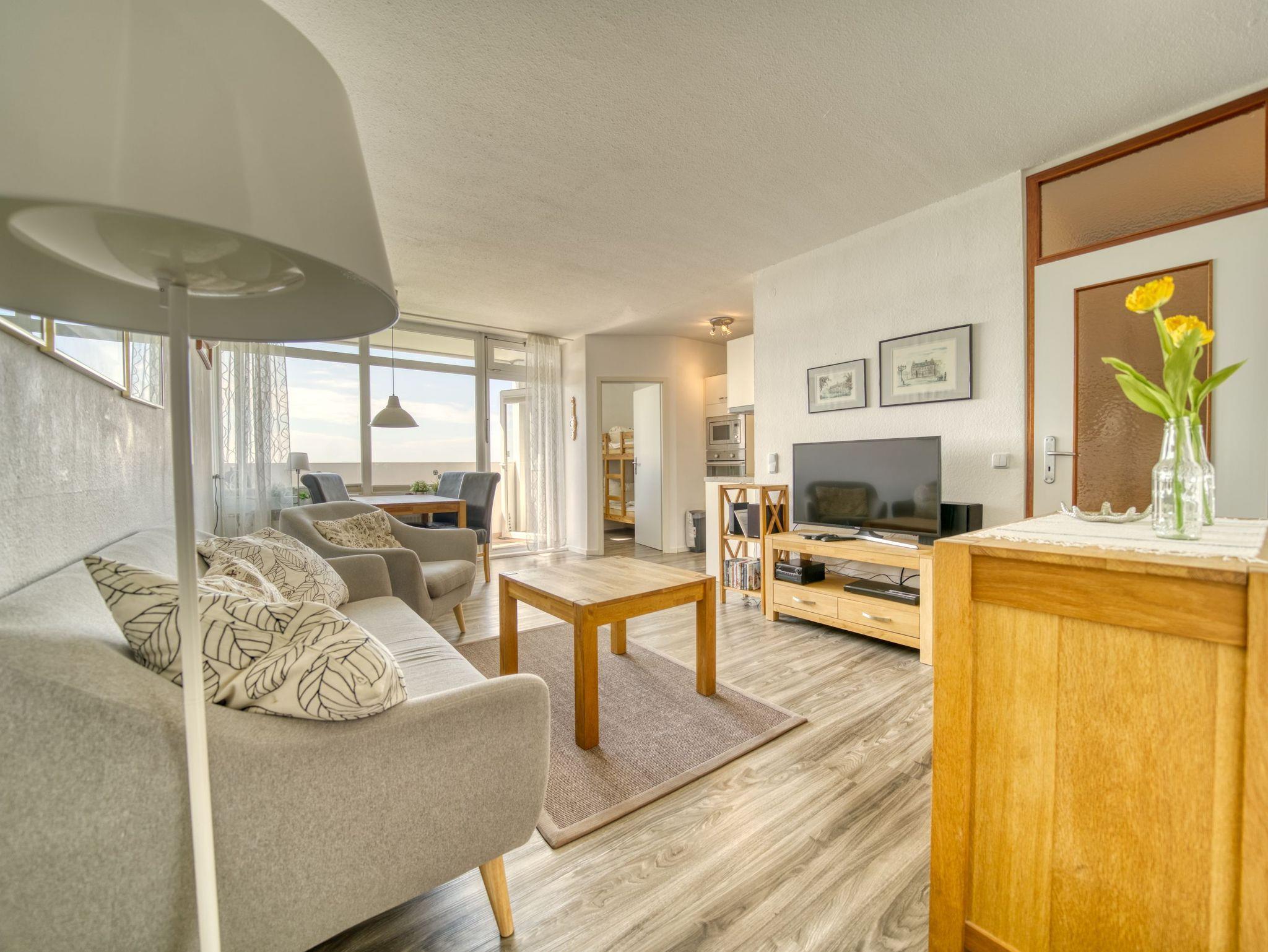 Genießen Sie Ihren Ostseeurlaub in dieser modernen 4-Personen-Ferienwohnung im Ferienpark Heiligenhafen, im Haus H, Etage 5, mit wunderschönem Blick auf die Ostsee. Auf 45 m² bietet die Wohnung ausreichend Platz für bis zu 4 Personen und punktet mit einem Balkon, der den idealen Ausblick auf das Meer bietet ? der perfekte Ort, um den Tag zu beginnen oder ausklingen zu lassen.