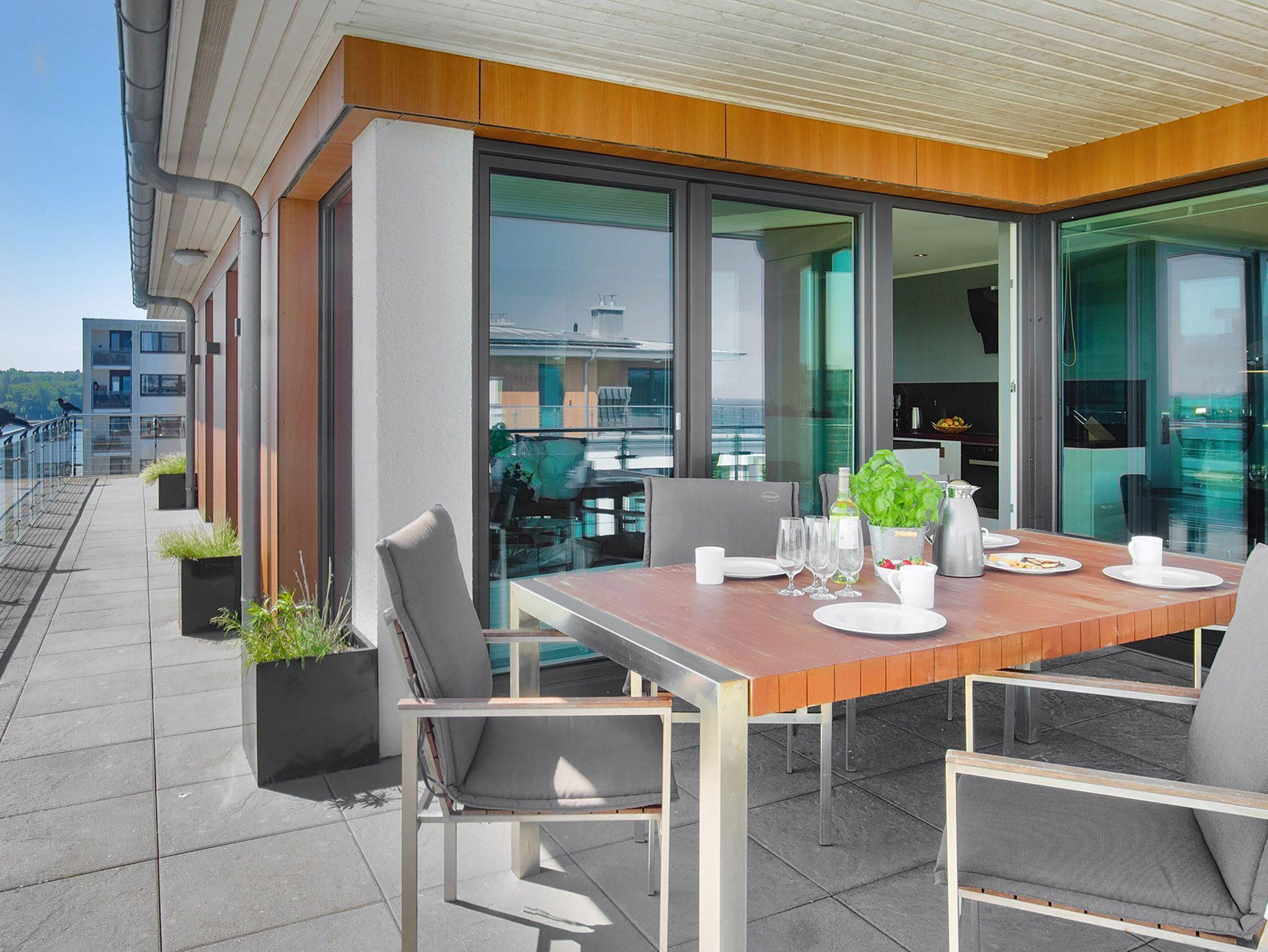 Die halbseitig umlaufende Terrasse ist von allen Räumen aus zugänglich und ermöglicht ein einzigartiges Ostsee-Feeling. Mit stilvollen Gartenmöbeln ausgestattet, lädt sie zum Verweilen ein, während der exklusive Gasgrill für das leibliche Wohl sorgt. Ob eine frische Tasse Kaffee am Morgen oder ein kühles Glas Wein beim Sonnenuntergang ? hier lässt sich das maritime Flair in vollen Zügen genießen.