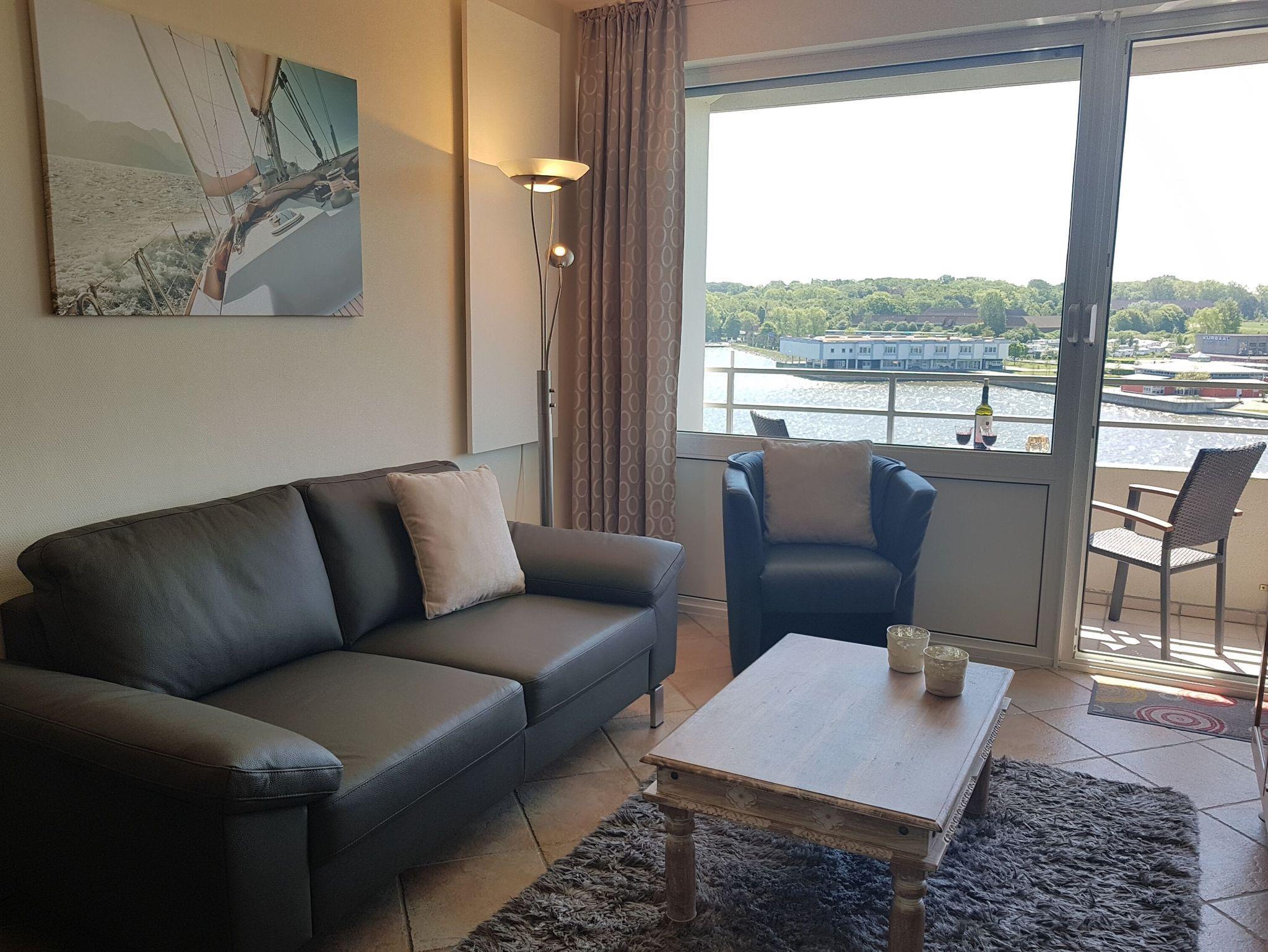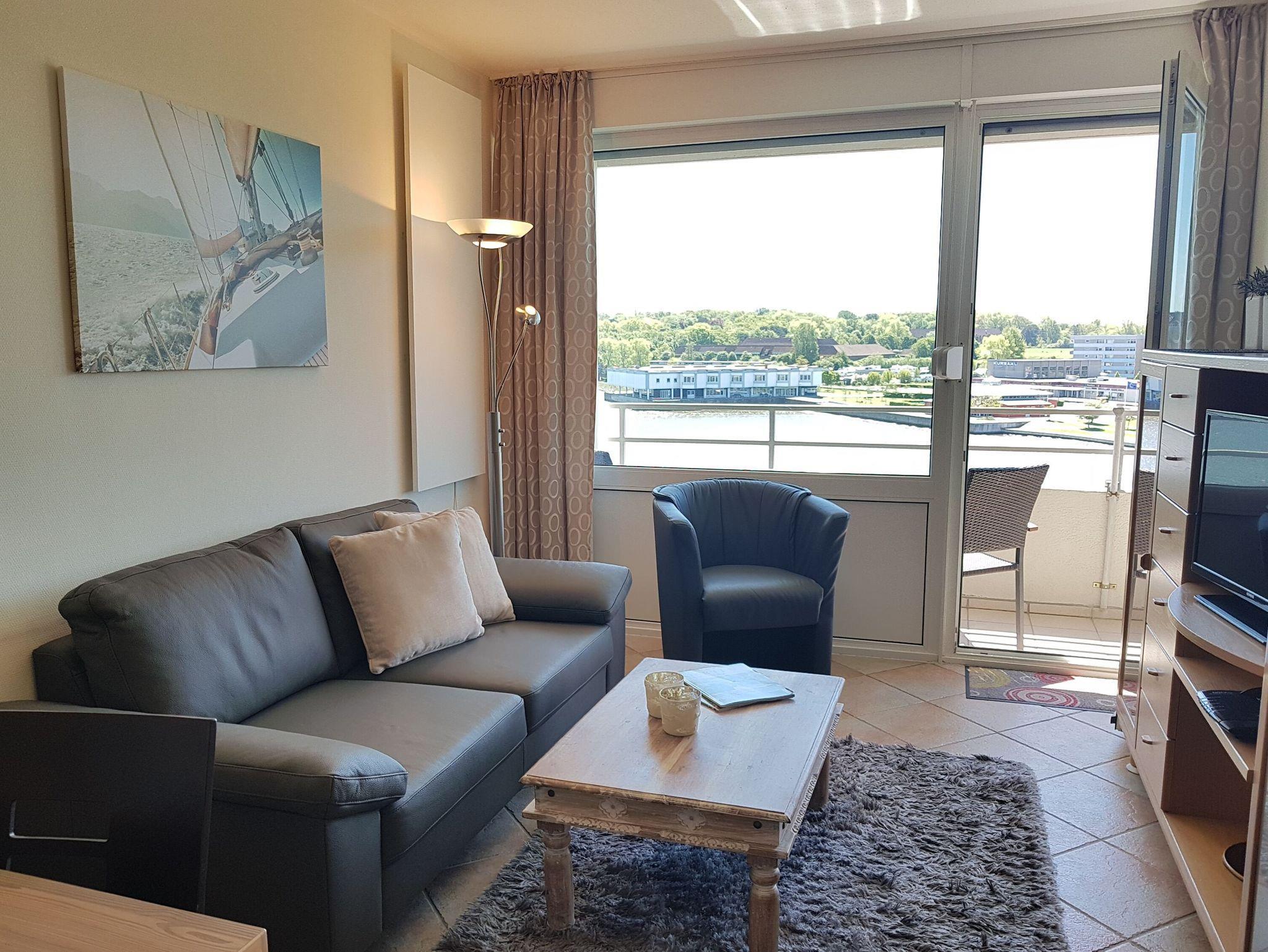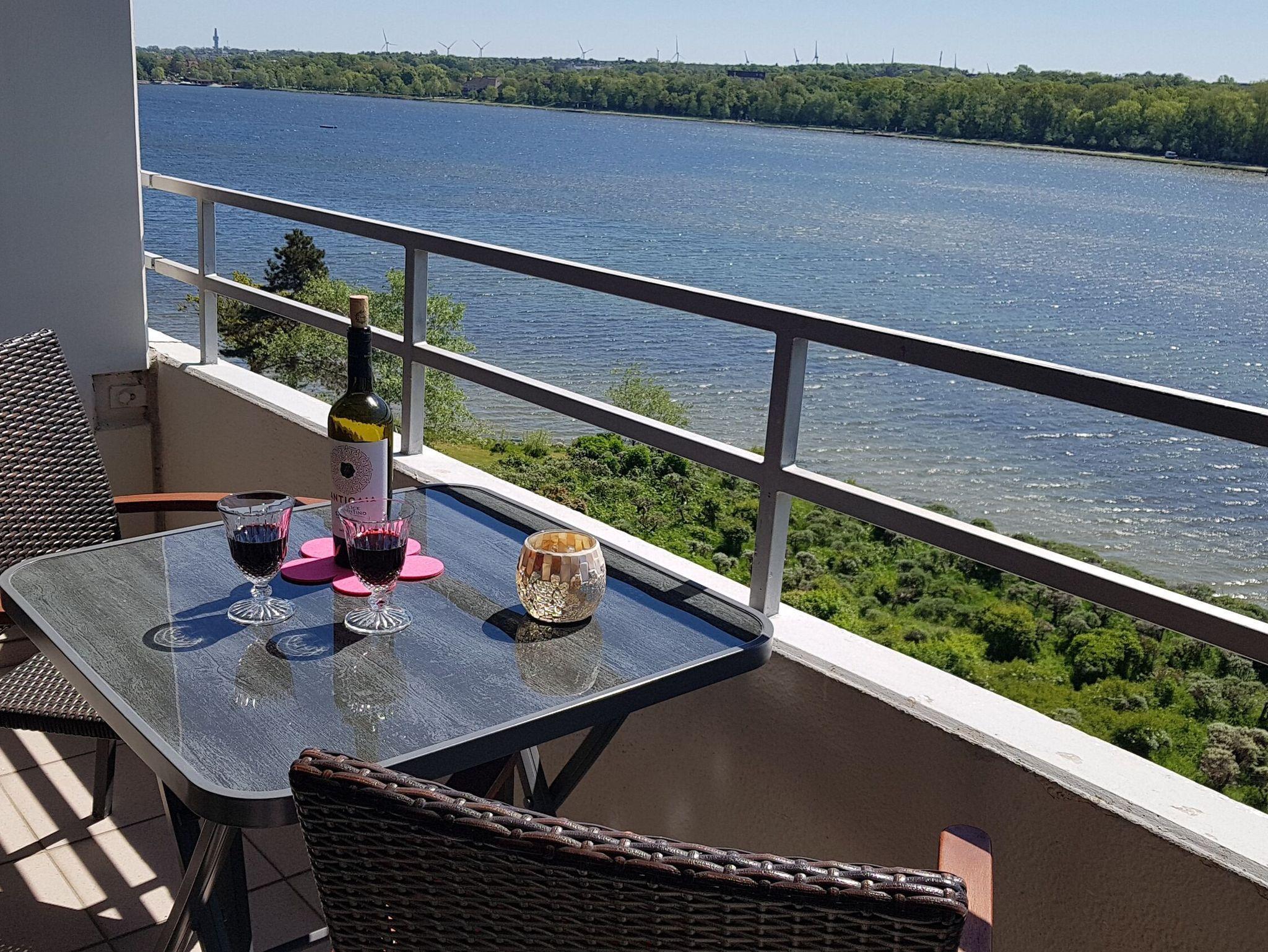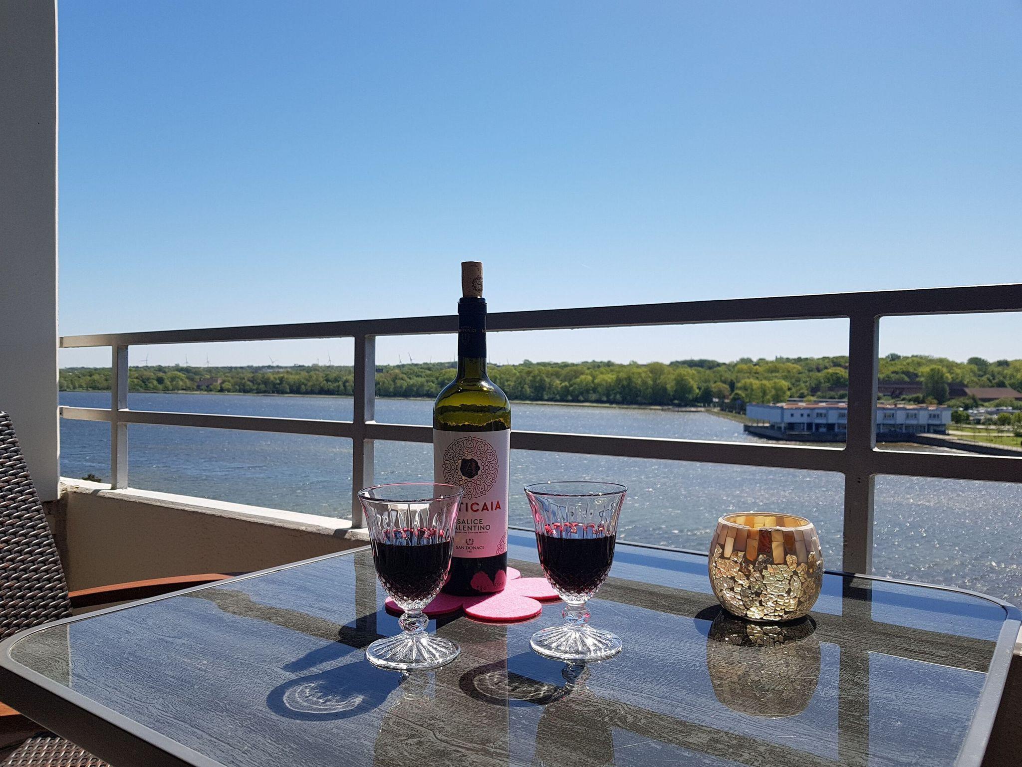Die Fewo besitzt einen möblierten Balkon mit herrlichem Panoramablick über den Binnensee, sie befindet sich in der 6. Etage. Aufzug vorhanden.