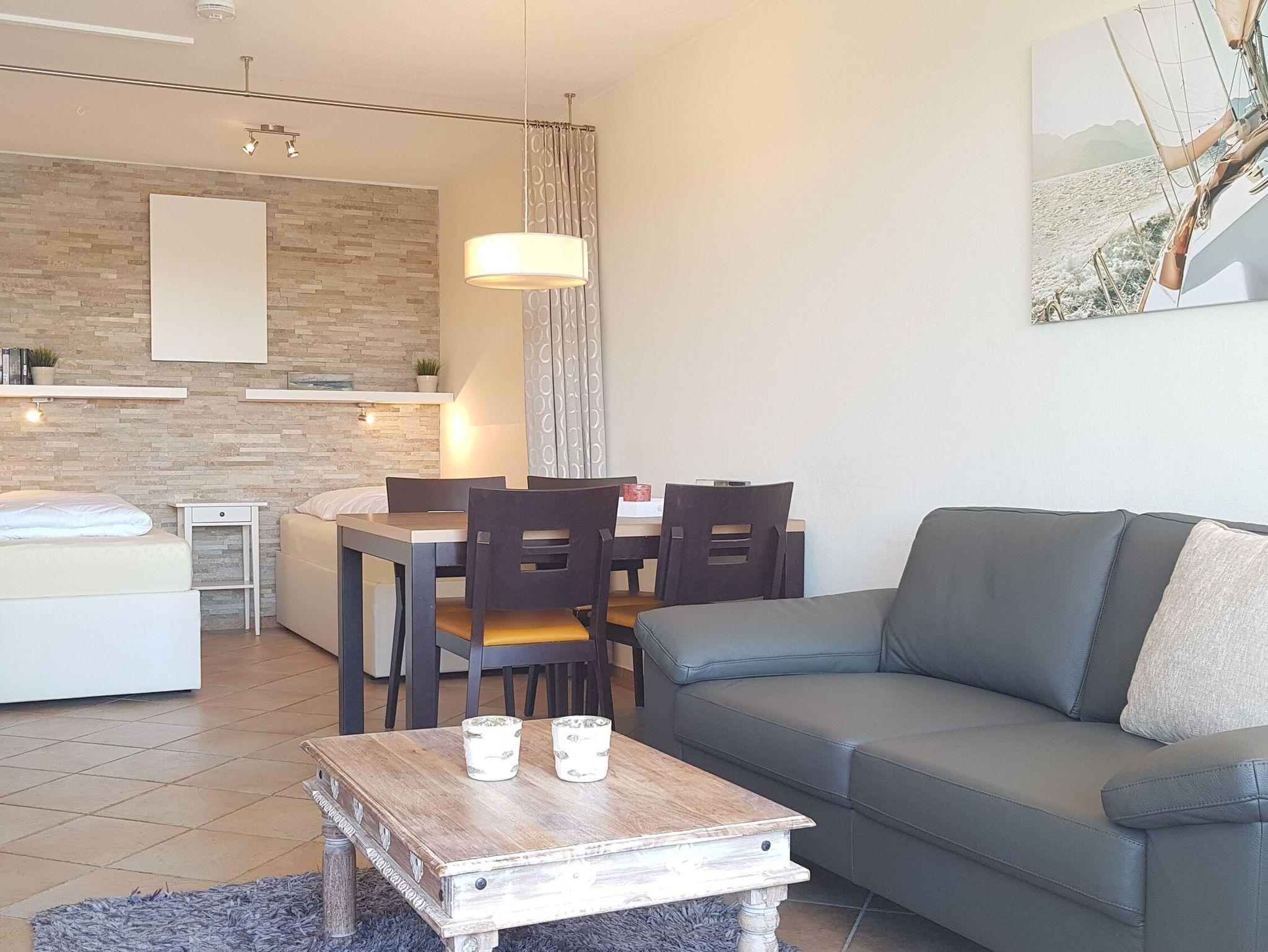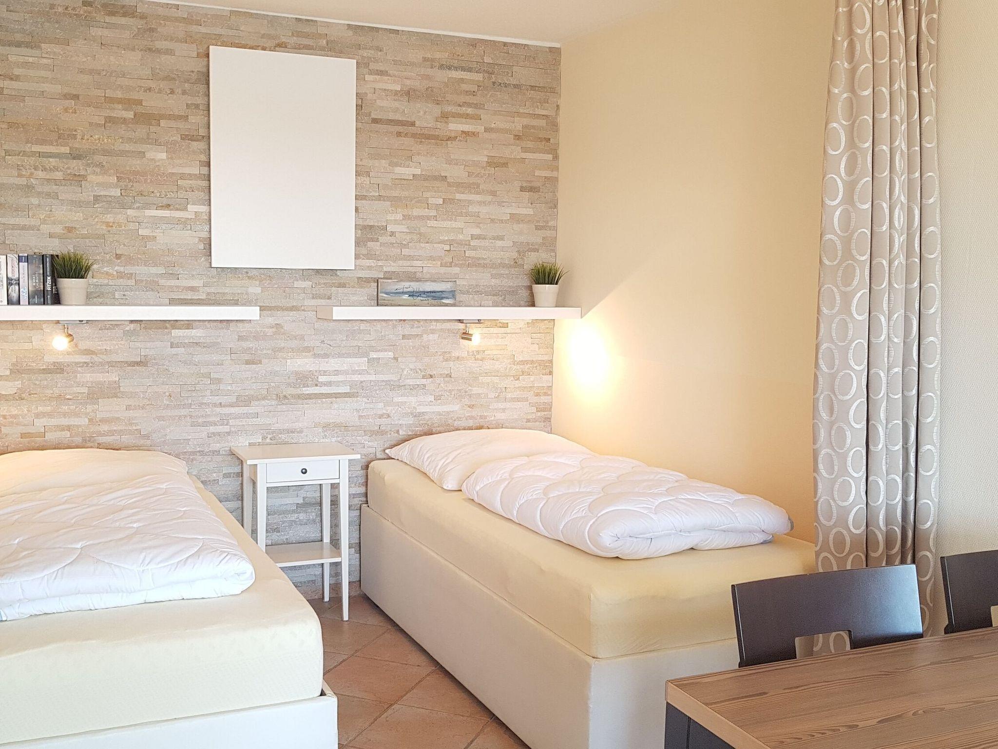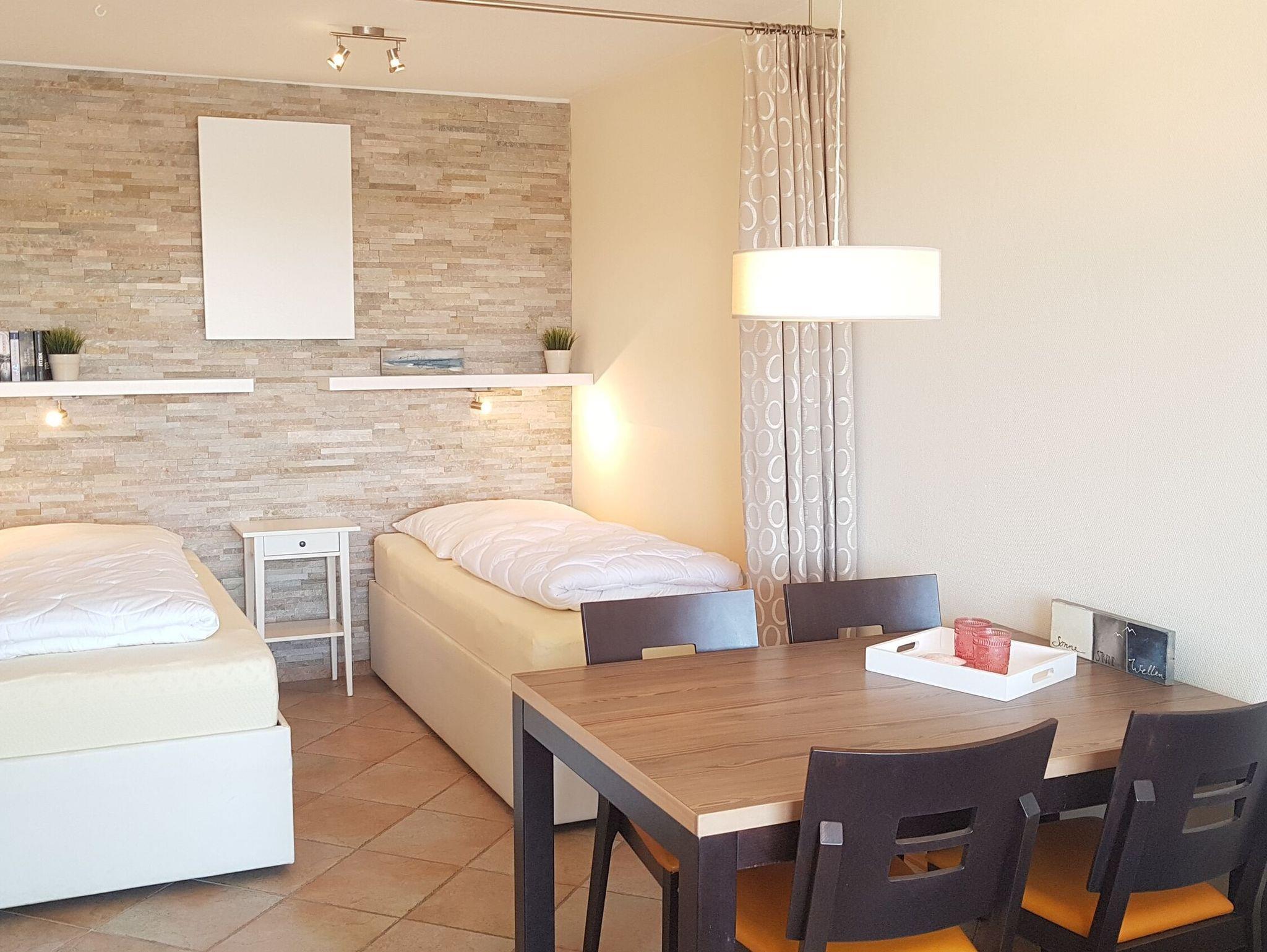 Die helle gepflegte Ferienwohnung (47 m²) befindet sich im Appartementhaus Schöne Aussicht und liegt direkt am Strand, auf der Landzunge zwischen Ostsee und Binnensee, auf dem Steinwarder. Bis zu 3 Personen (2 Erwachsene + 1 Kind) können hier ihren Urlaub genießen.