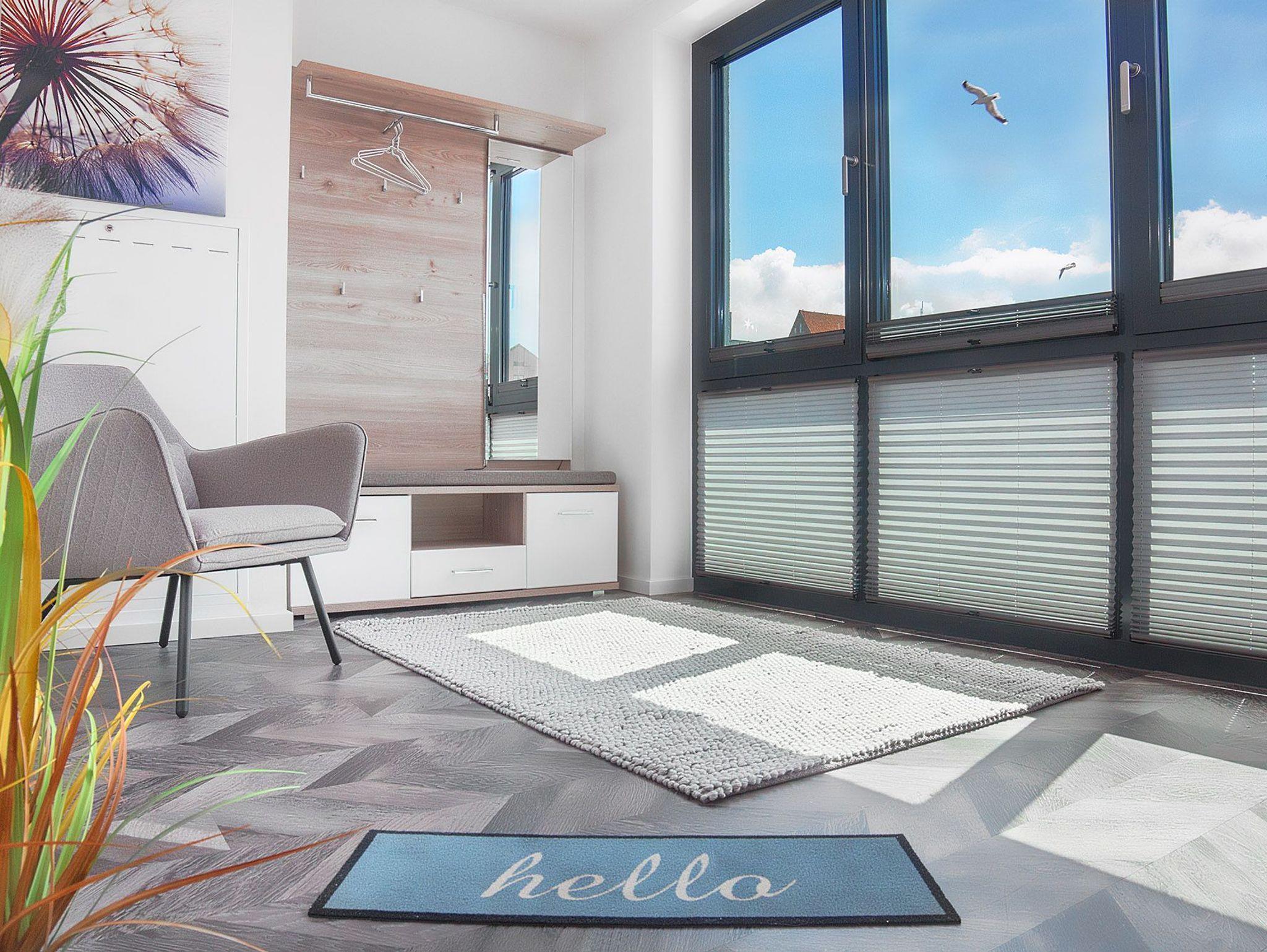 Die exklusive Maisonette-Ferienwohnung Stressless erstreckt sich auf zwei Ebenen mit ca. 111 m² über das 1. OG und Staffelgeschoss, mittels einer innenliegenden Treppe. Der moderne und großzügige Wohnbereich mit besonderer Einrichtungslinie bietet Ihnen einen fantastischen Panoramablick über den Jachthafen und die Ostsee. Näher am Wasser kann man nicht Urlaub machen!