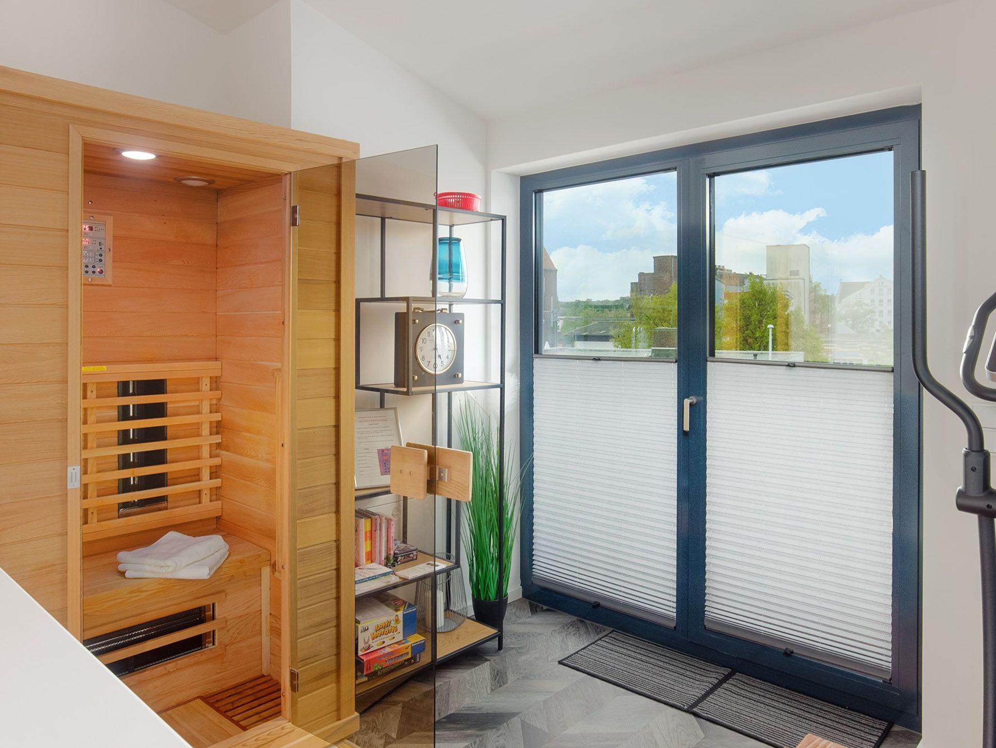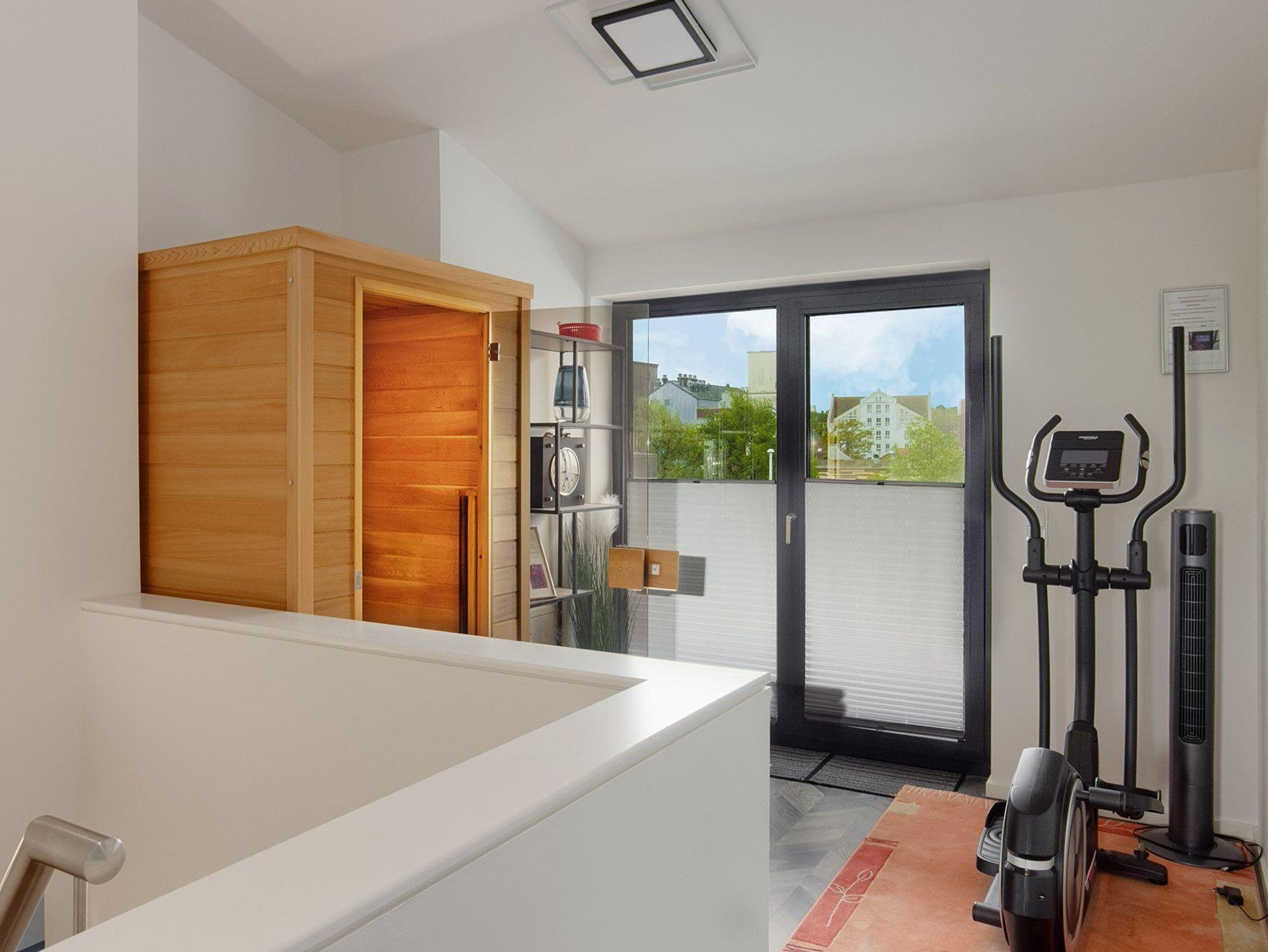 Für sportlich Aktive ist auch ein Crosstrainer in der Unterkunft und zum späteren Entspannen eine Infrarot Sauna.