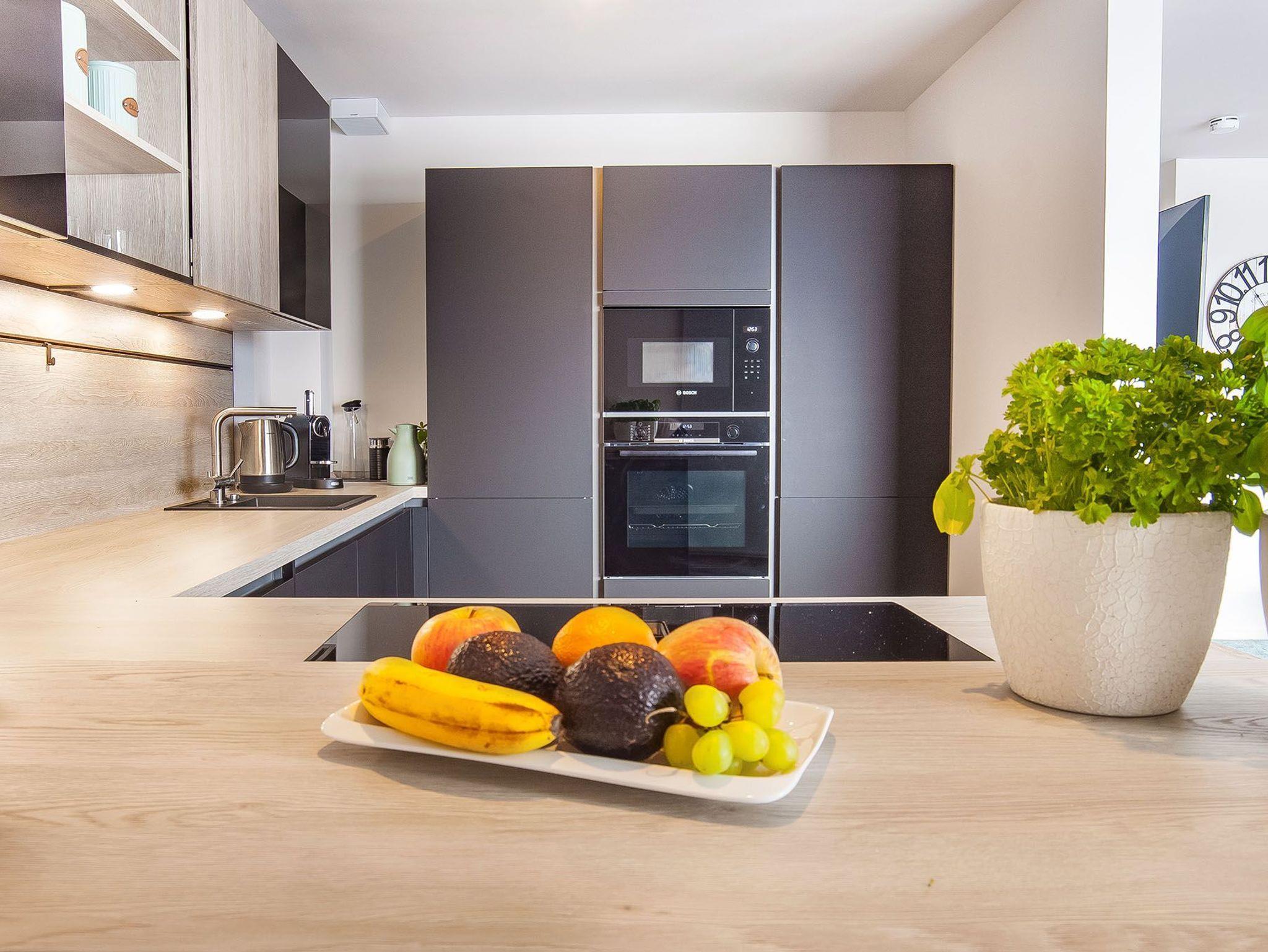 Der Essbereich direkt neben der offenen und voll ausgestatteten Küche steht zur kulinarischen Entfaltung bereit. Ob Nespresso Kapselmaschine, integriertes Abzugsfeld oder andere Küchengeräte, einfach stressless. Auch hier an der Küche finden Sie einen Minitresen mit Sitzgelegenheiten für die Gesellschaft. Dabei müssen Sie auf Ausblick nicht verzichten. Das Abendessen ist damit unvergesslich!