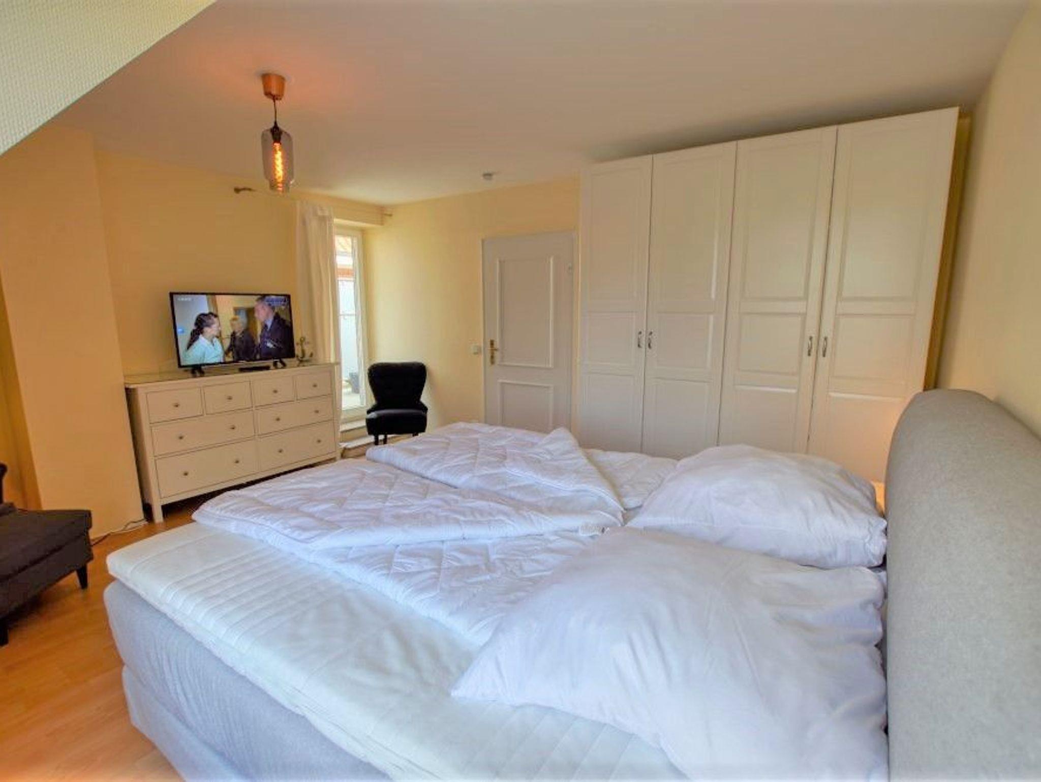 Zwei separate Schlafzimmer mit hochwertigen Boxspringbetten, TV und Kleiderschrank