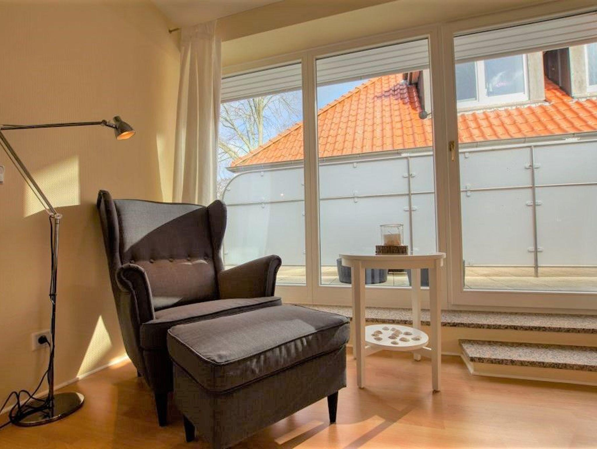 Beide Schlafzimmer bieten Zugang zu den Balkonen und eine gemütliche Sesselecke zum Lesen