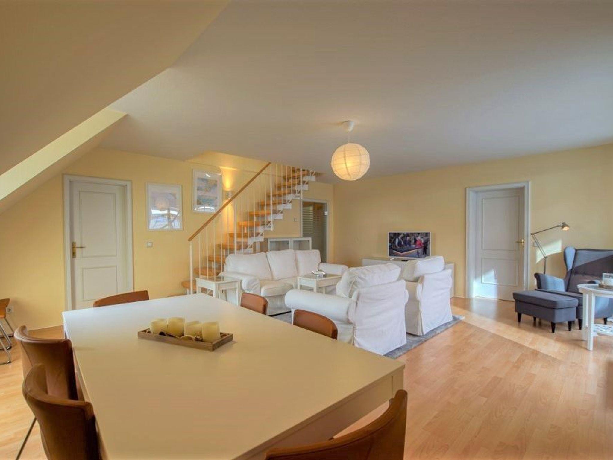 Verbringen Sie Ihren wohlverdienten Urlaub in dieser großzügigen und lichtdurchfluteten Ferienwohnung im Dachgeschoss in der Friedrich-Ebert-Straße 16a in Heiligenhafen. Mit 129 m² und einer Ausstattung, die keine Wünsche offenlässt, bietet diese Wohnung Platz für 6 bis 8 Personen. Genießen Sie den Ostseefernblick in Richtung Fehmarnsundbrücke, Graswarder und das Naturschutzgebiet ein unvergesslicher Blick!