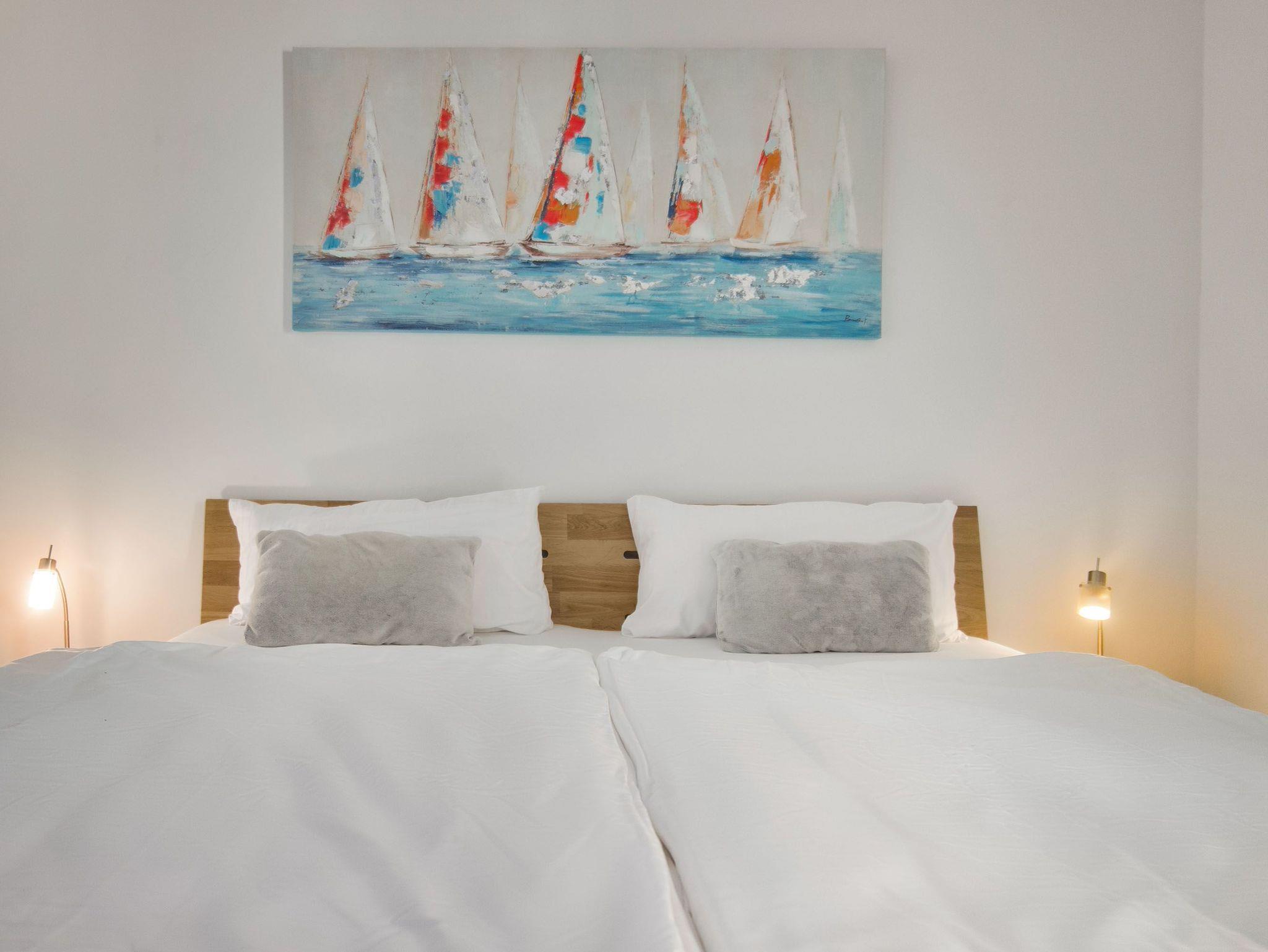 ? Schlafzimmer 2 bietet zwei Einzelbetten (90x200 cm) und einen 32-Zoll-TV für individuelle Unterhaltung.