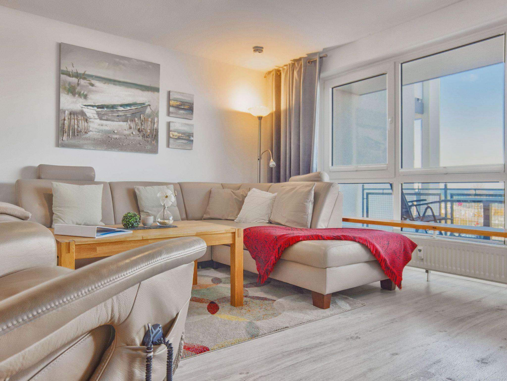 Moderne Ferienwohnung mit Meerblick und Balkon in Heiligenhafen, nur wenige Schritte vom Strand entfernt.