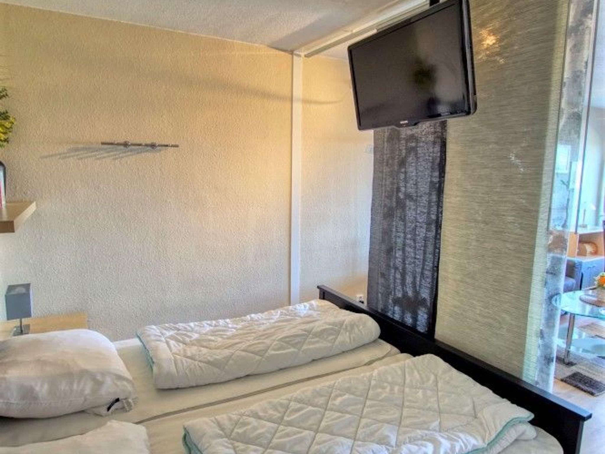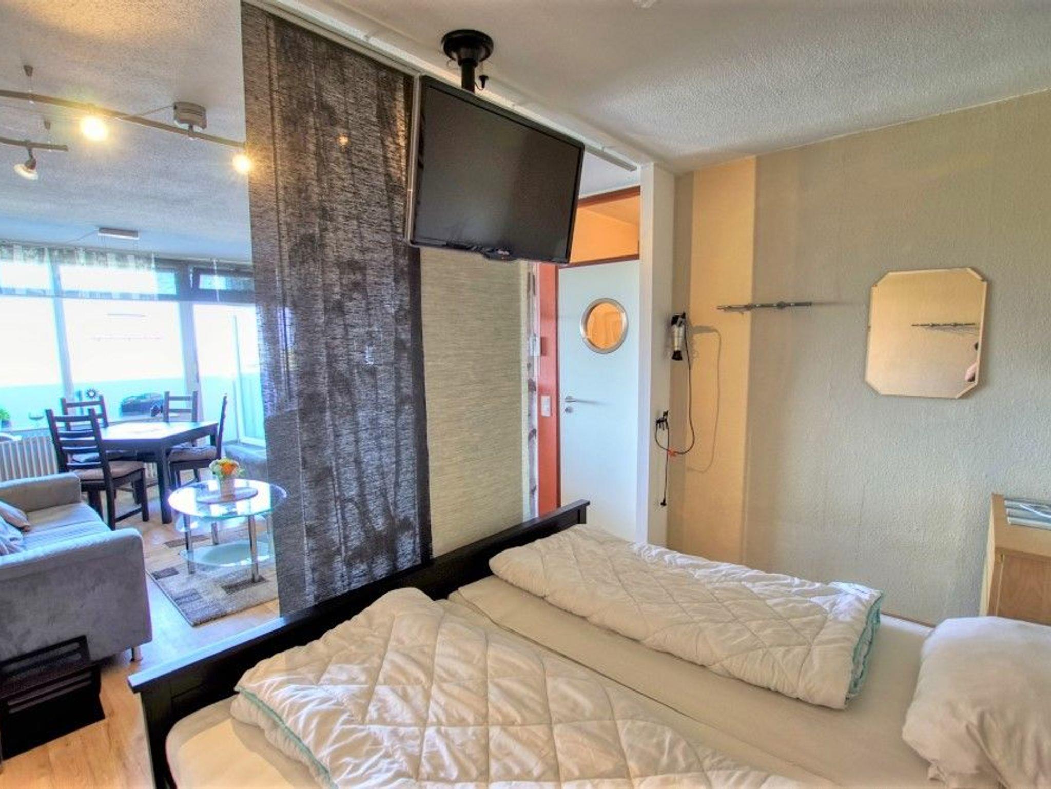Offener Wohn- und Schlafbereich mit Doppelbett und Flachbild-TV für entspannte Stunden