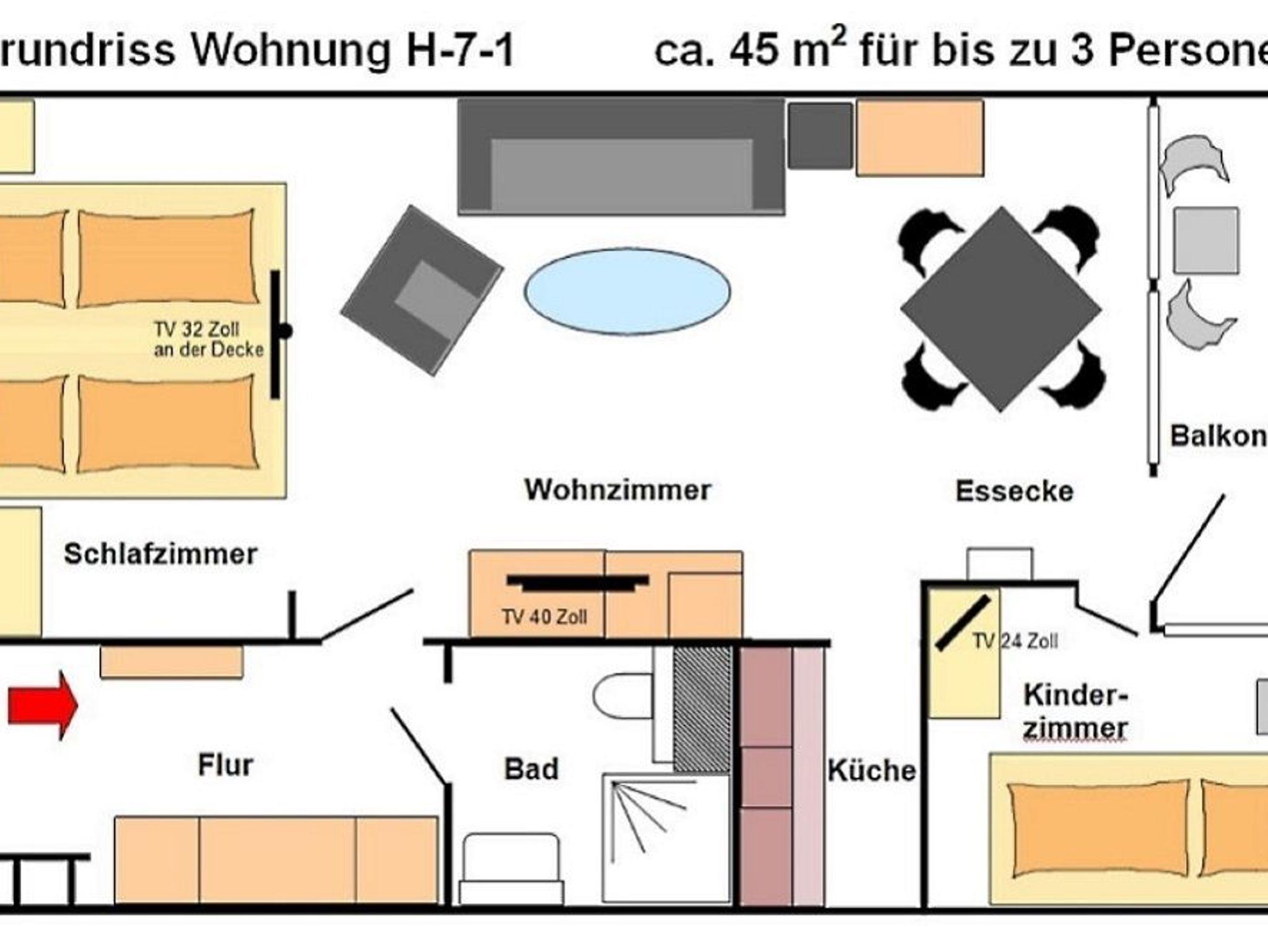 Verbringen Sie Ihren nächsten Urlaub in dieser gemütlichen 3-Personen-Ferienwohnung im Ferienpark Heiligenhafen, im Haus H, Etage 7, mit traumhaftem Blick auf die Ostsee. Auf 45 m² bietet die Wohnung komfortablen Platz für bis zu 3 Personen und besticht durch ihre moderne Ausstattung und den Balkon, von dem Sie den Ausblick auf das Meer genießen können.