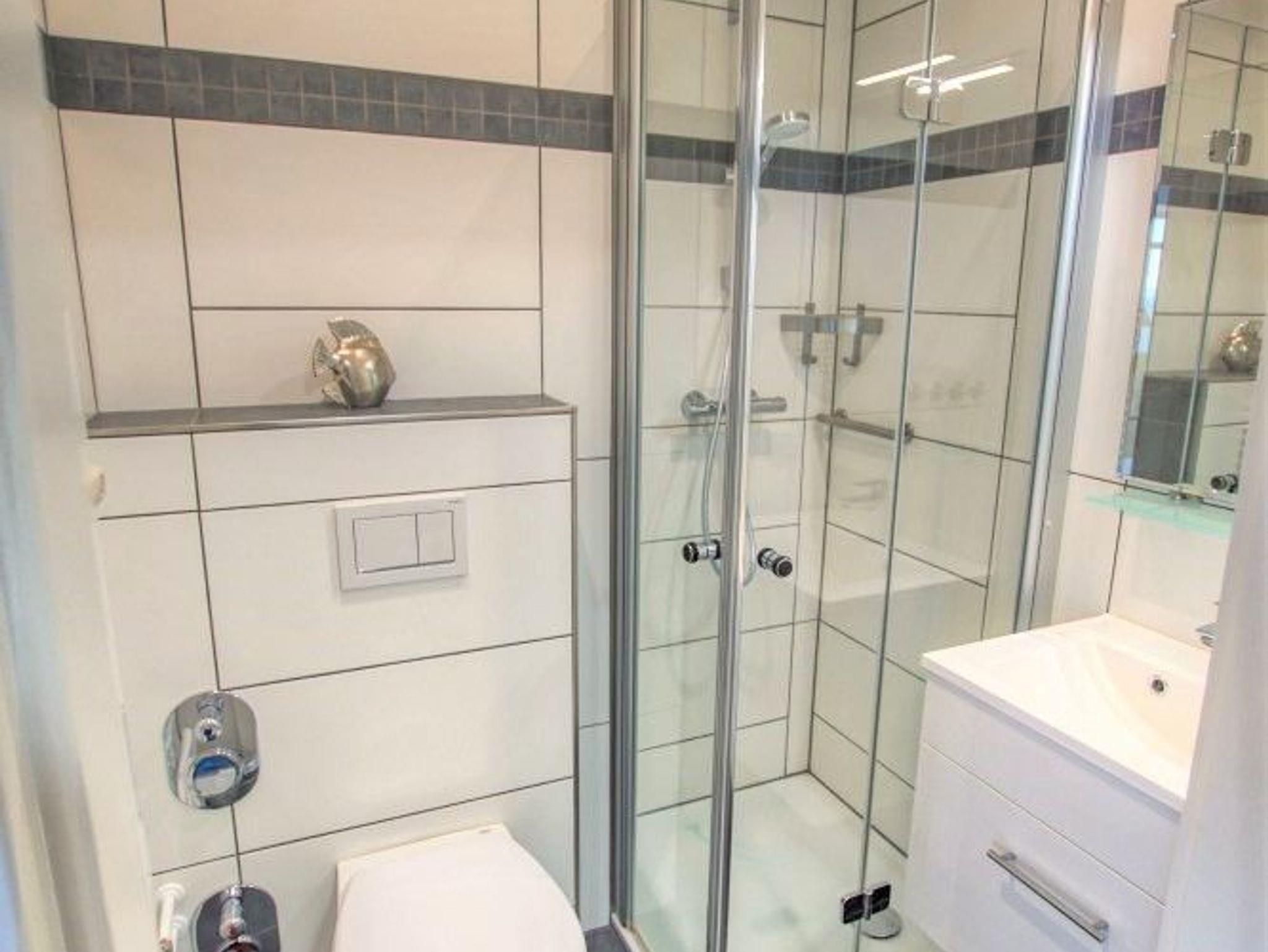 Bad mit WC, Duschkabine und niedrigem Duscheinstieg