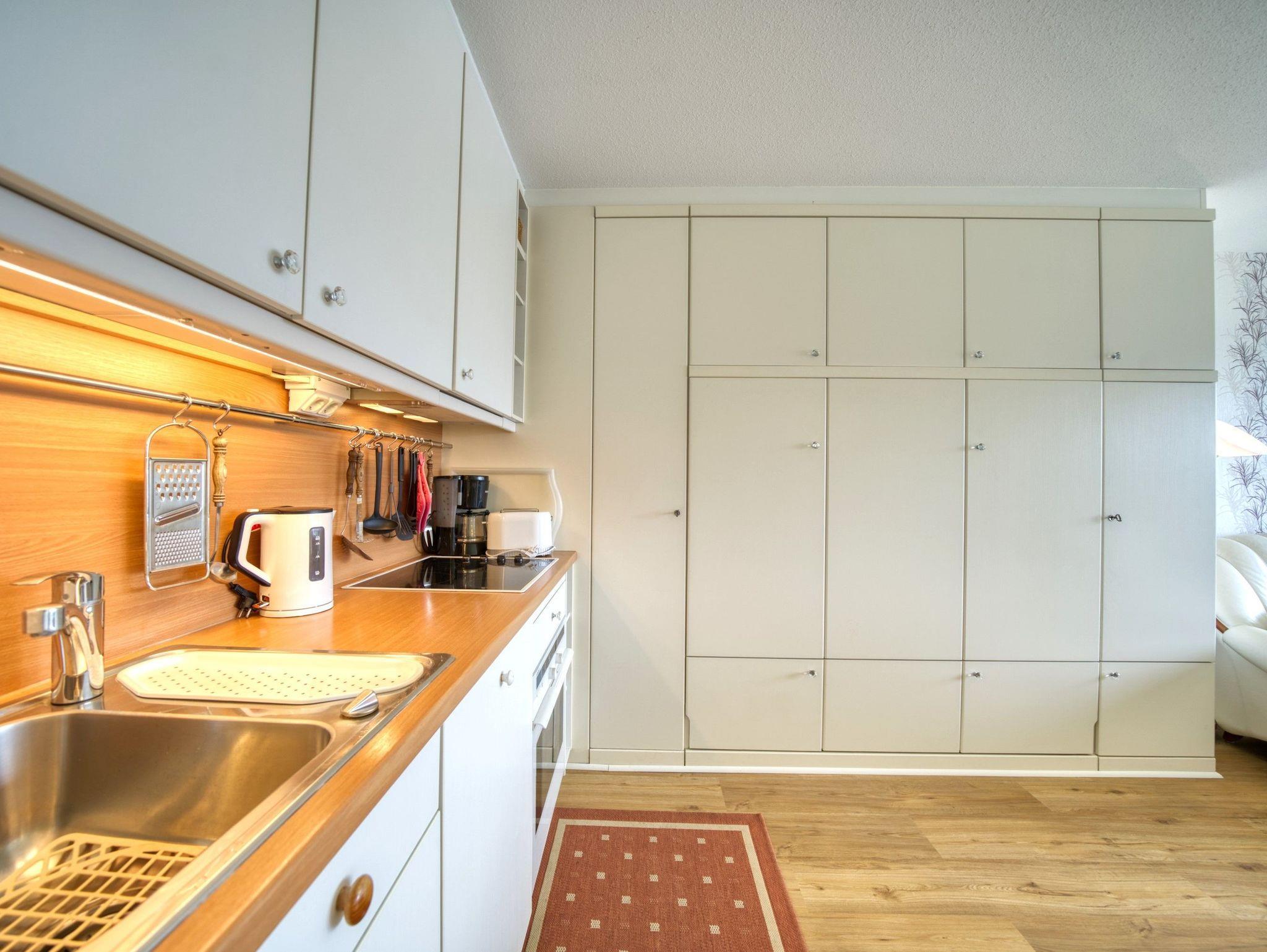 Küche: Die Pantryküche ist gut ausgestattet mit einem 4-Plattenherd, Backofen und einem Kühlschrank mit Gefriermöglichkeit ? ideal für die Zubereitung eigener Mahlzeiten.