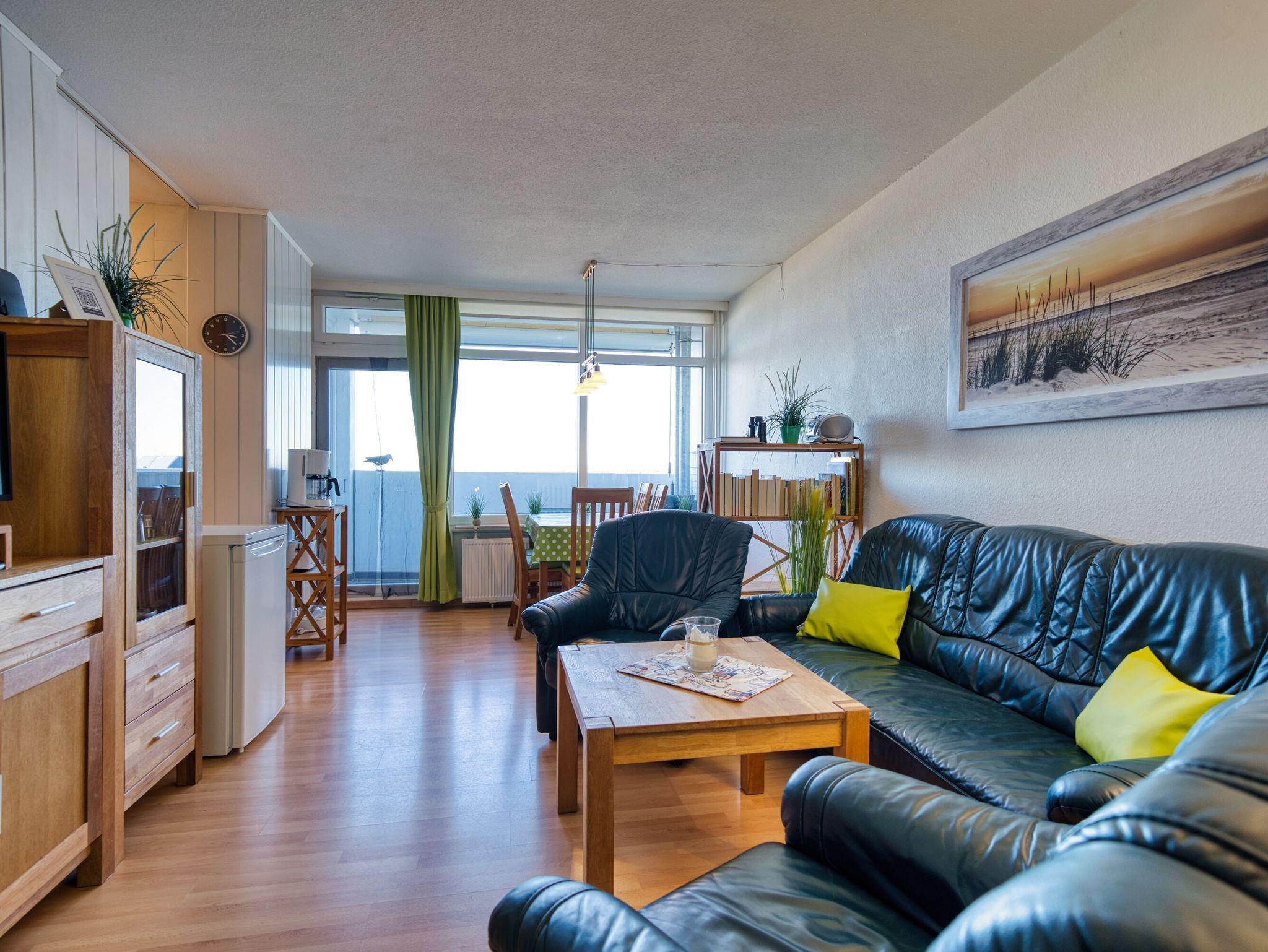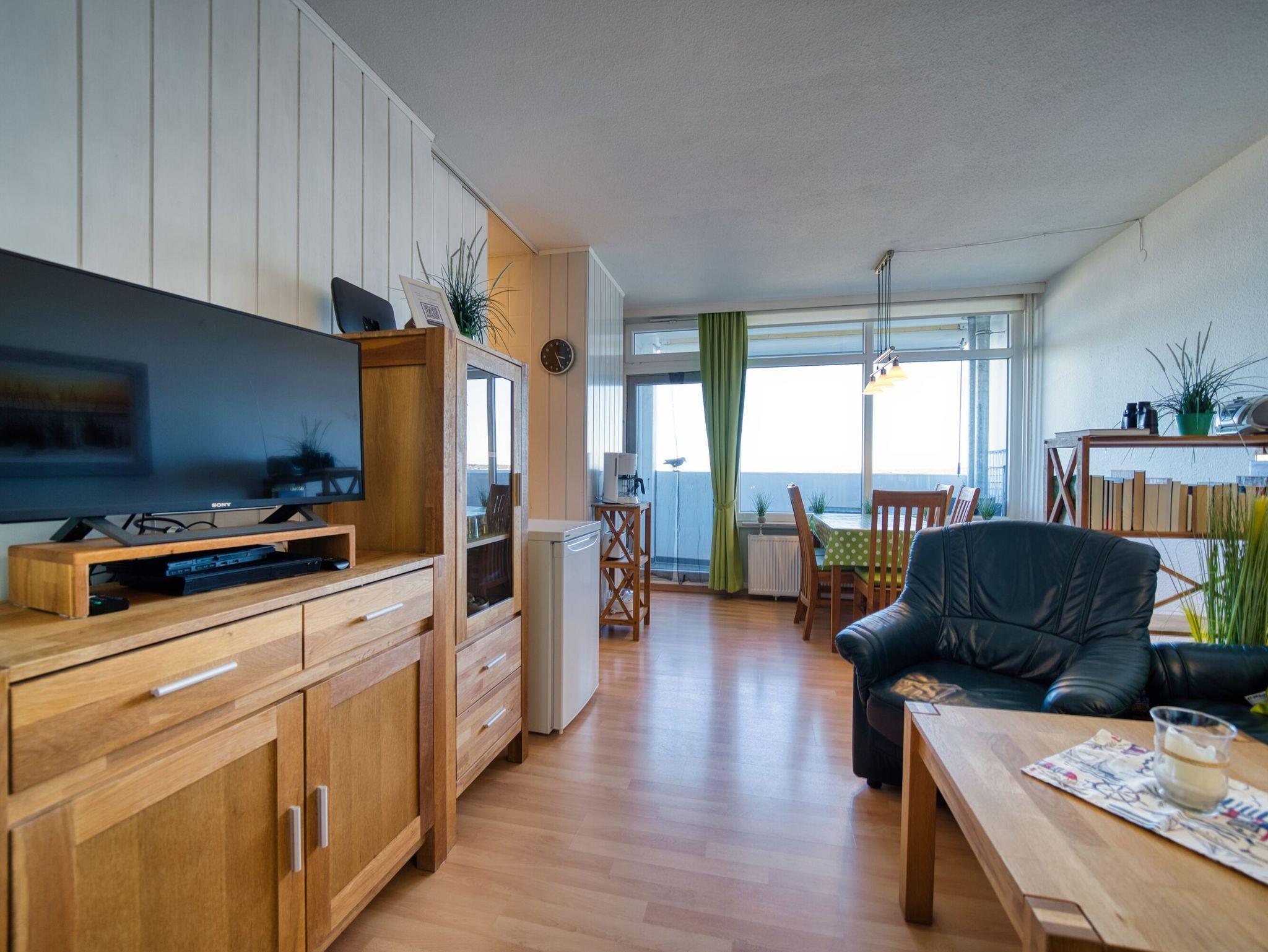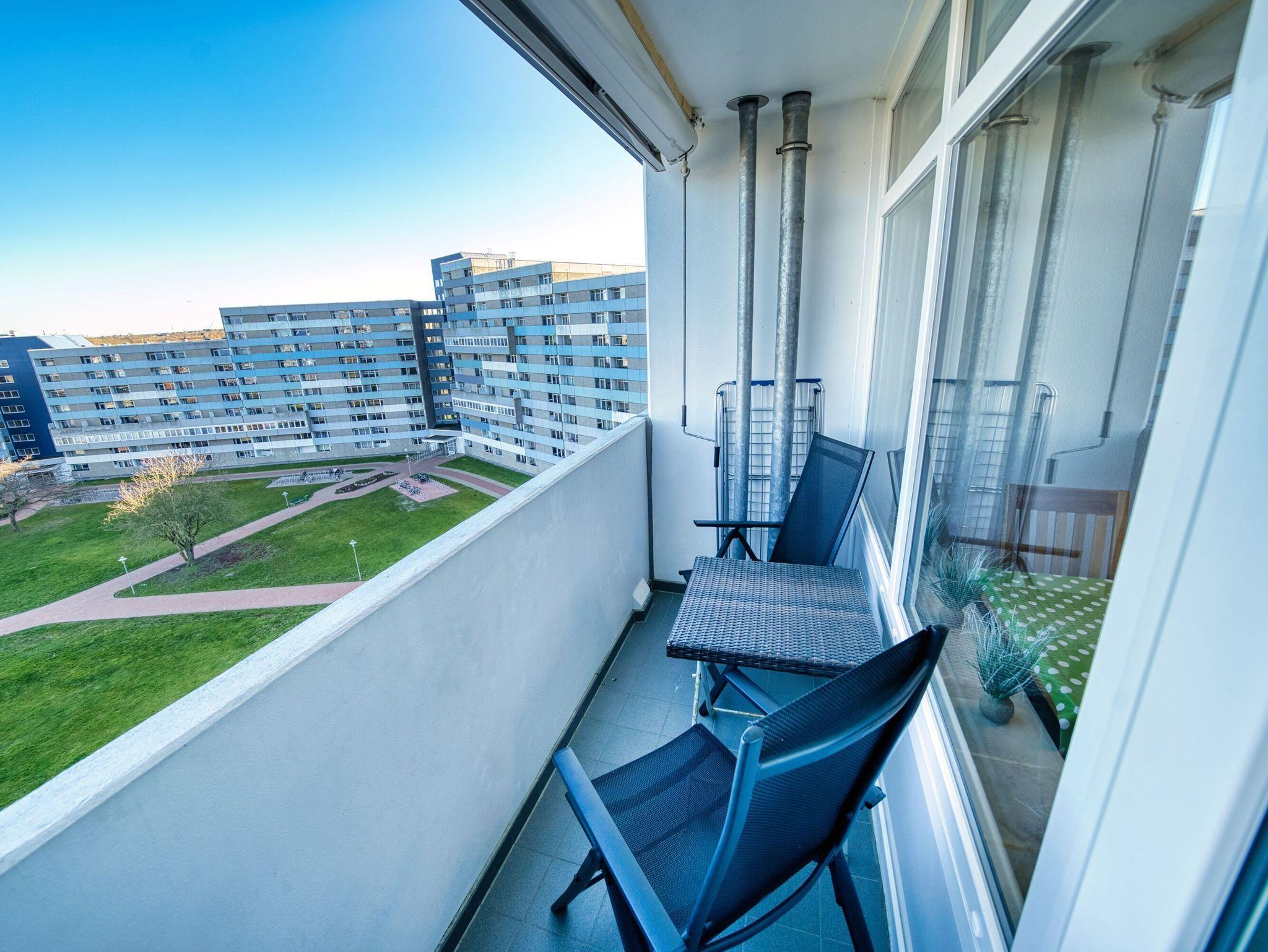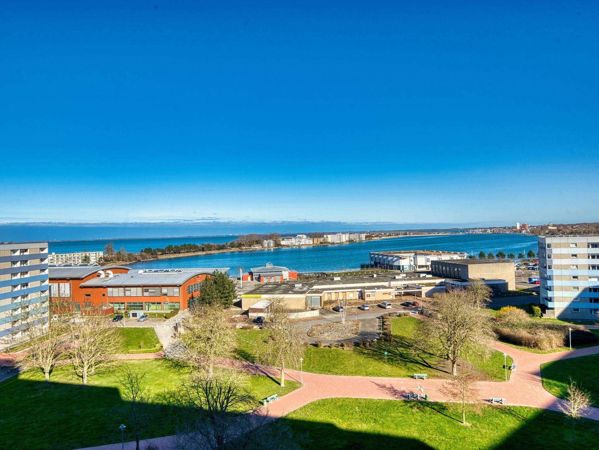 Die Wohnung im 8. Stock des Hauses G bietet einen herrlichen Blick auf die Ostsee und die Fehmarnsundbrücke. Der Strand ist nur etwa 300 m entfernt und bequem über die Promenade zu erreichen.