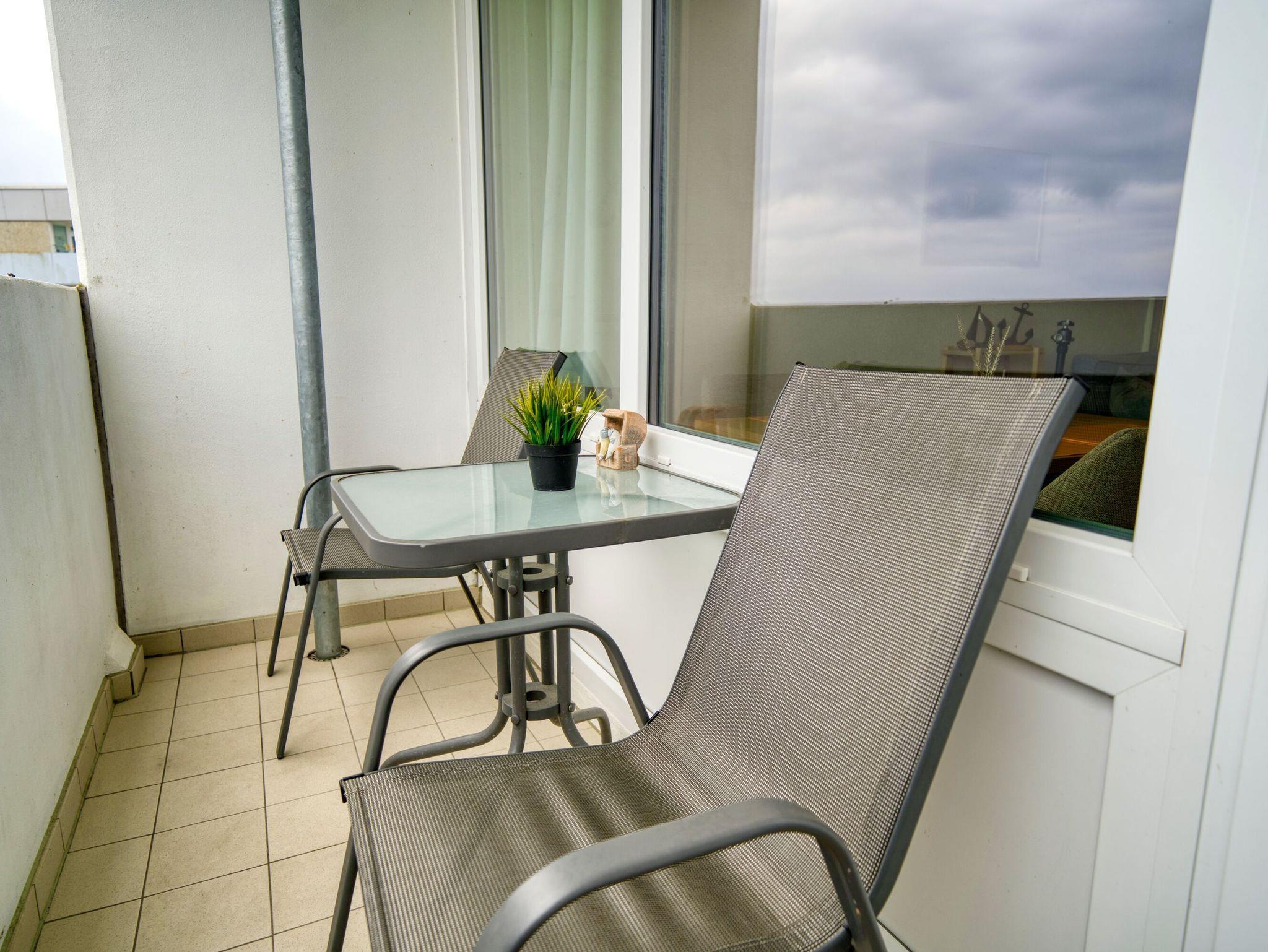 Komfortable Ferienwohnung im Haus K des Ferienparks Heiligenhafen mit Ostseeblick und Balkon, nur 300 m vom Strand entfernt.