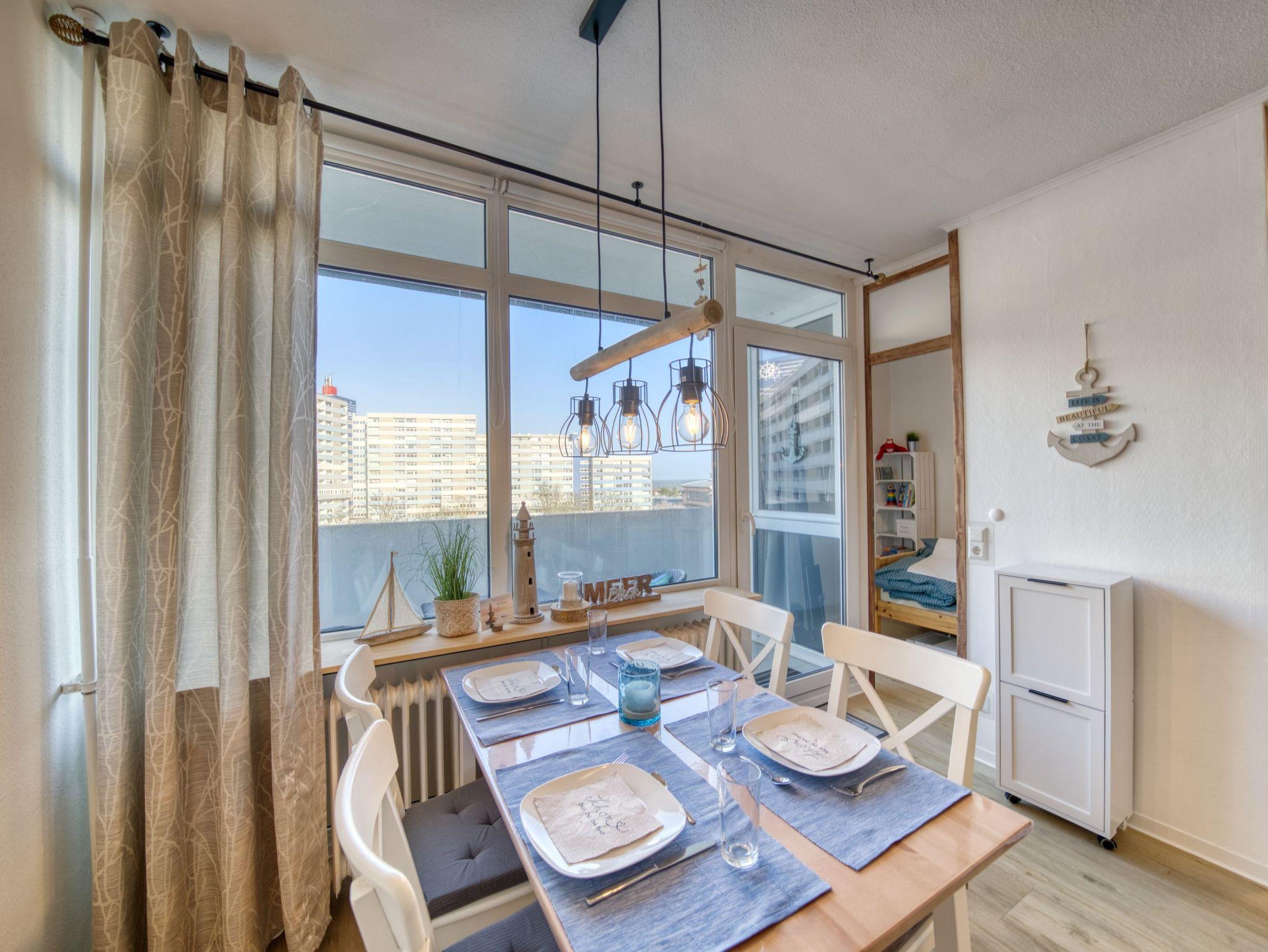 Die liebevoll eingerichtete Ferienwohnung liegt im Haus N im Ferienpark, in der 5. Etage, mit Balkon zum Innenhof, der einen schönen Blick auf die Grünanlagen und die Ostsee Richtung Fehmarn bietet.