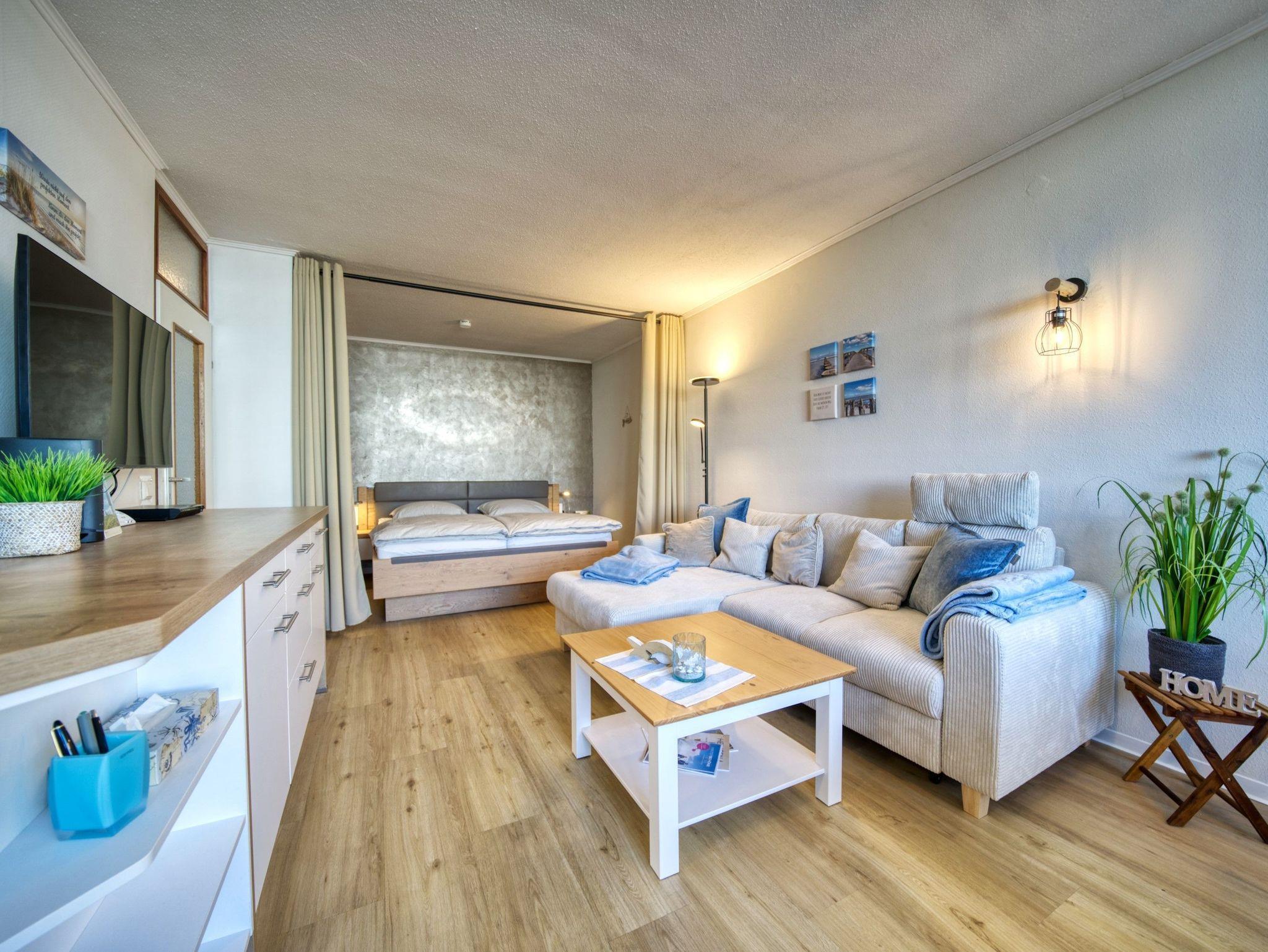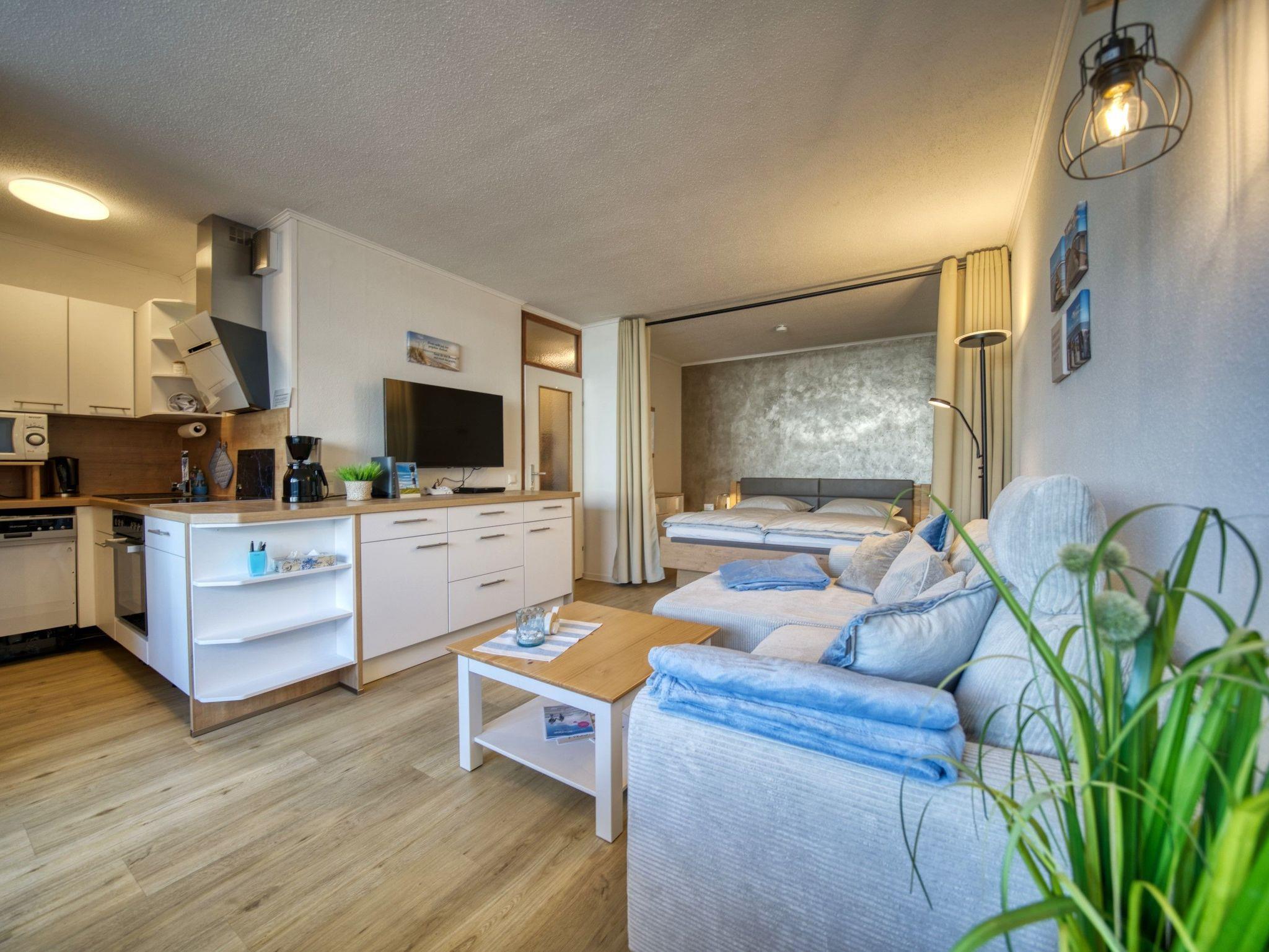 Moderne Ferienwohnung mit Balkon, Meerblick und direkter Strandnähe im Ferienpark Heiligenhafen.