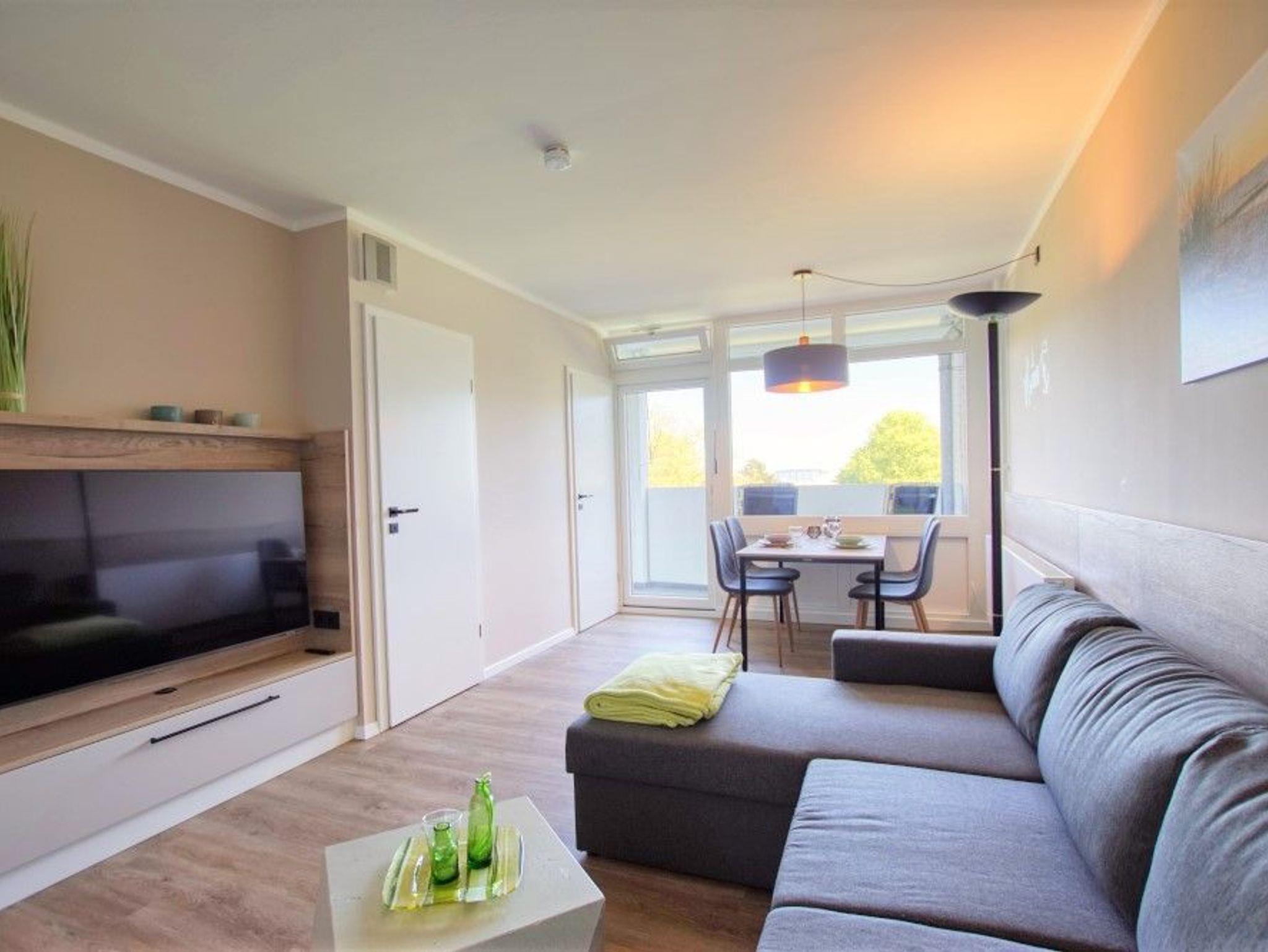 Liebevoll renovierte Ferienwohnung mit Balkon und Strandkorb am Ostseestrand in Heiligenhafen.