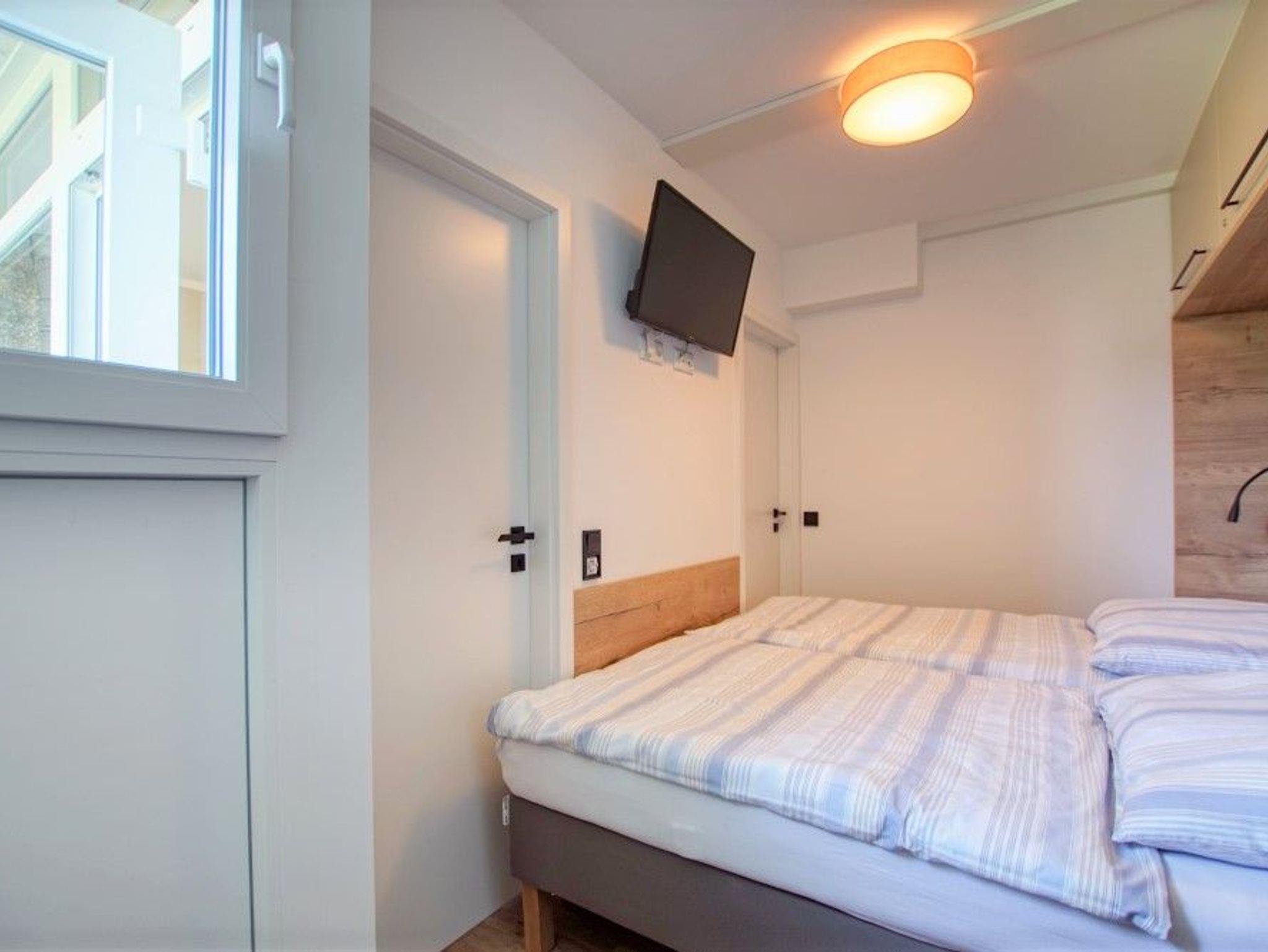 Separates Schlafzimmer mit Doppelbett, TV [&] Außenfenster