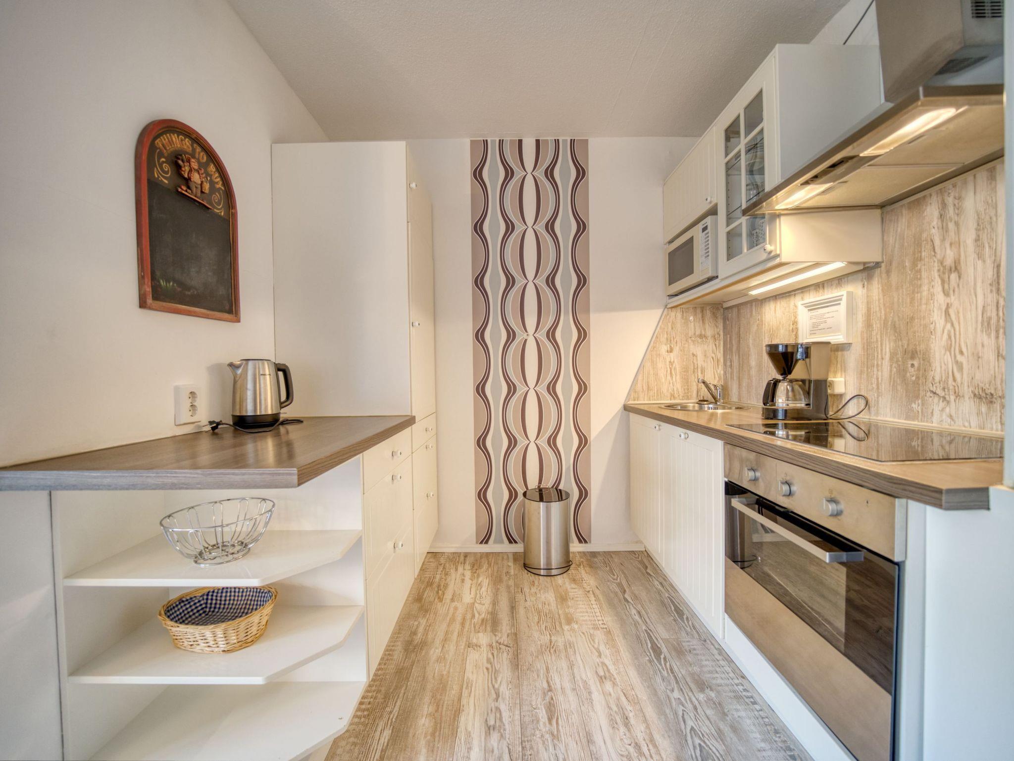 Küche: Backofen, Geschirrspüler, Kühlschrank mit Gefrierfach, 4-Plattenherd