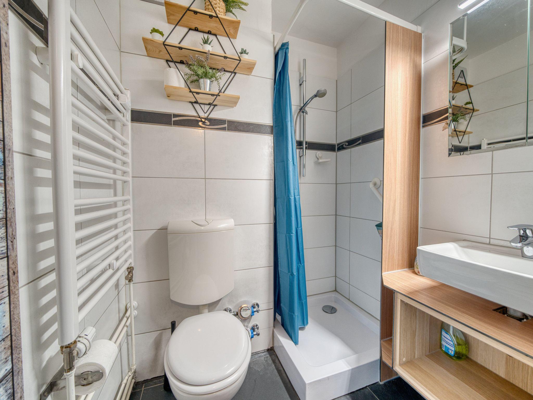 Praktisches Bad mit Dusche und WC