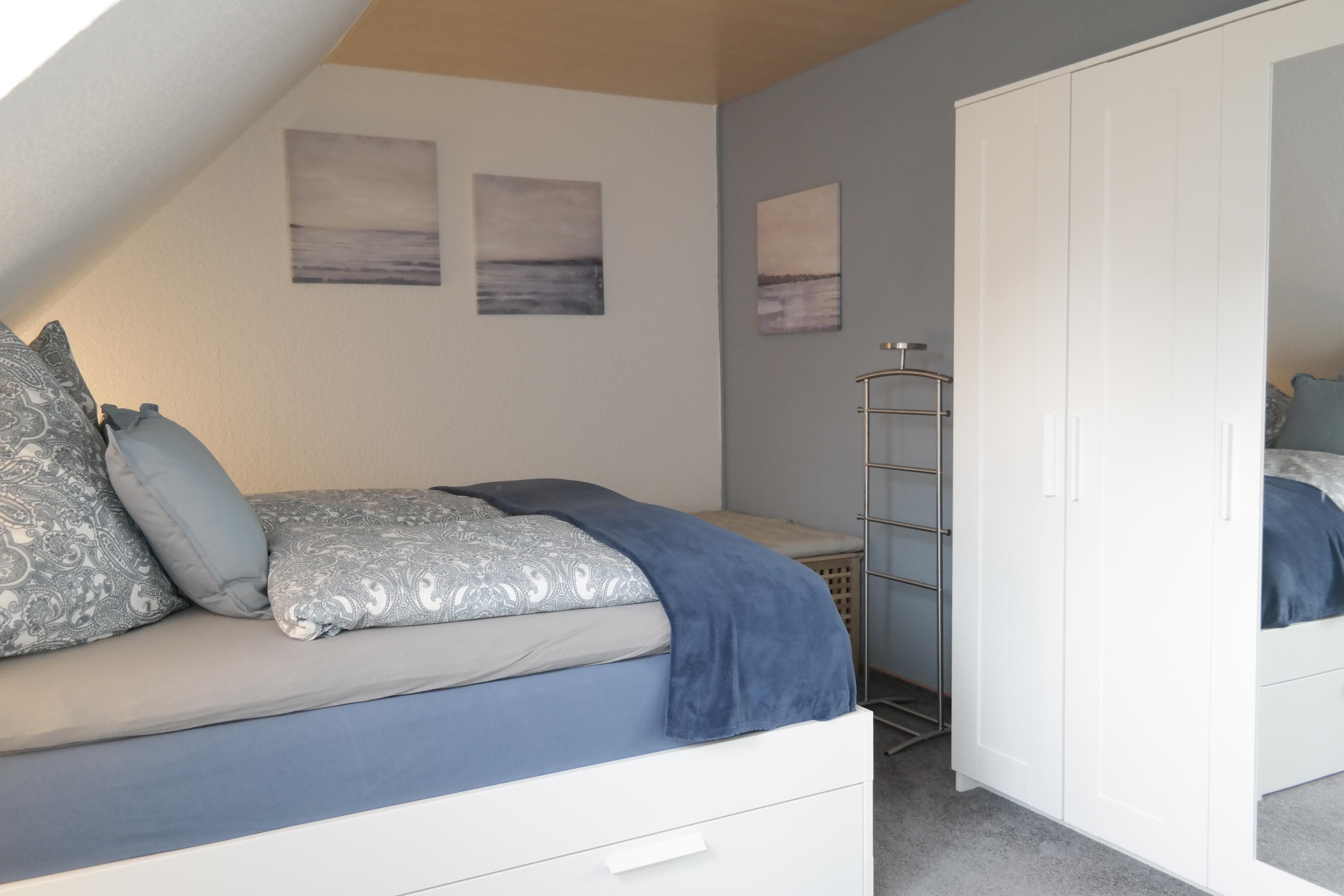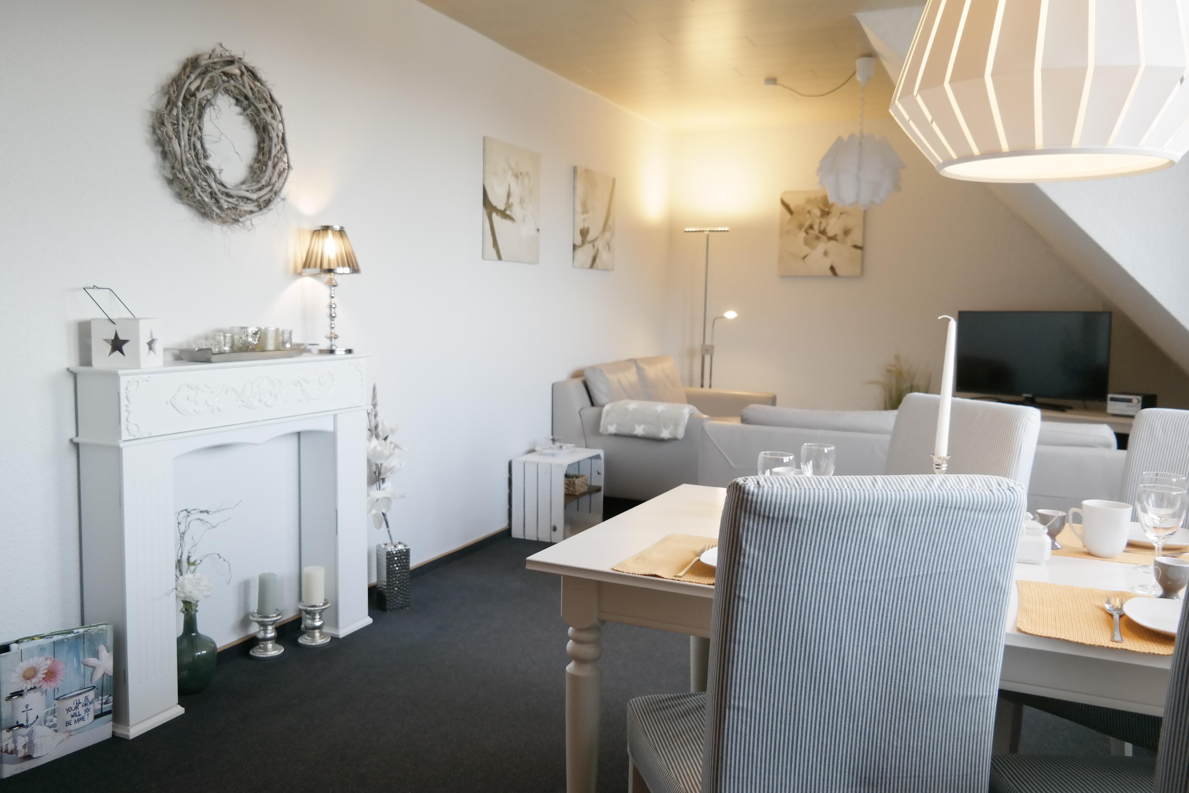 Helle Ferienwohnung mit Meerblick, offener Küche und zwei Schlafzimmern in Heiligenhafen.