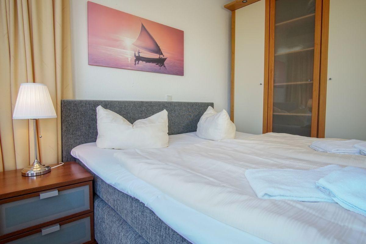 Moderne 49 m²-Ferienwohnung für 2 Personen: Doppelbett, separates Schlafzimmer, Flatscreen-TV, Aufzug, Meerblick, WLAN, u.v.m. !