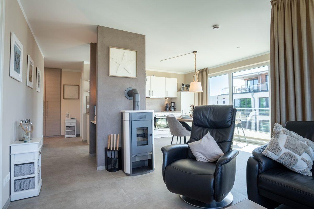 Moderne Ferienwohnung mit Meerblick, Balkon, Kamin und WLAN in Heiligenhafen für entspannte Urlaubstage.