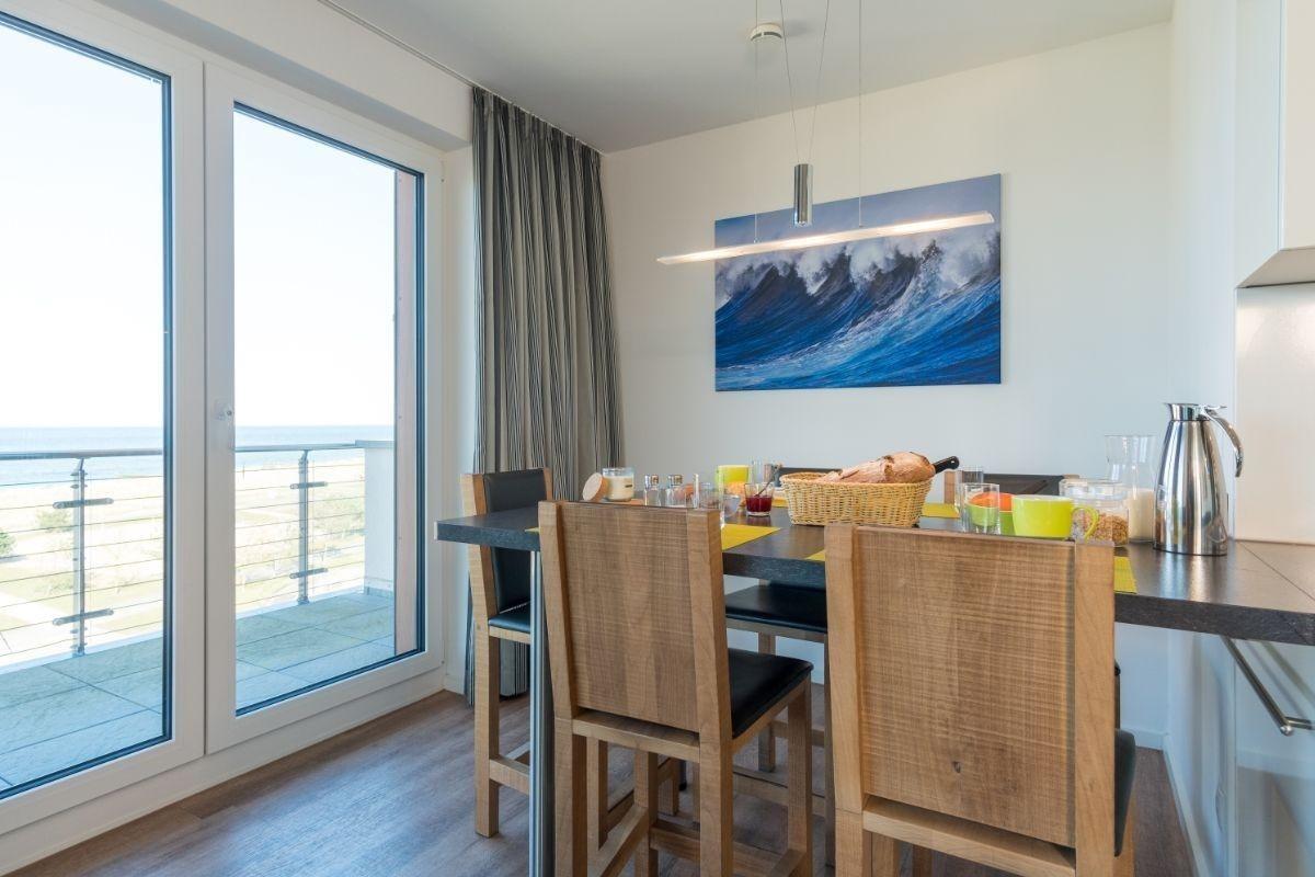 Das Penthouse Vier Jahreszeiten besticht durch eine sehr hochwertige Ausstattung und einen grandiosen Blick über die Ostsee. Das Herzstück der Wohnung ist ein 43 qm großer Wohn- und Essbereich der mit dezenter Eleganz auf Sie wartet und alle Annehmlichkeiten enthält, um Ihren Urlaub zu einem unvergesslichen Erlebnis werden zu lassen.
