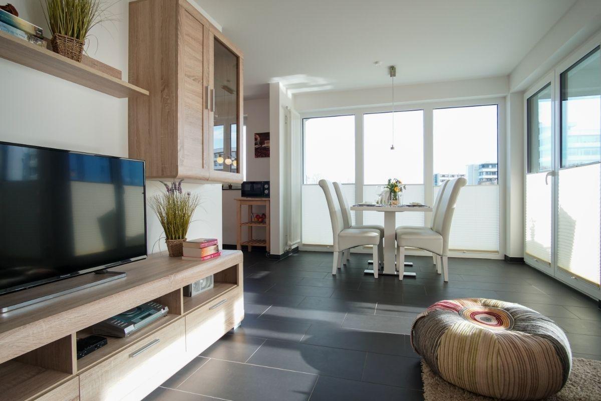 Helle 2-Zimmer-Ferienwohnung mit Balkon, WLAN und Wellnessbad in Heiligenhafen, nahe Strand und Seebrücke.