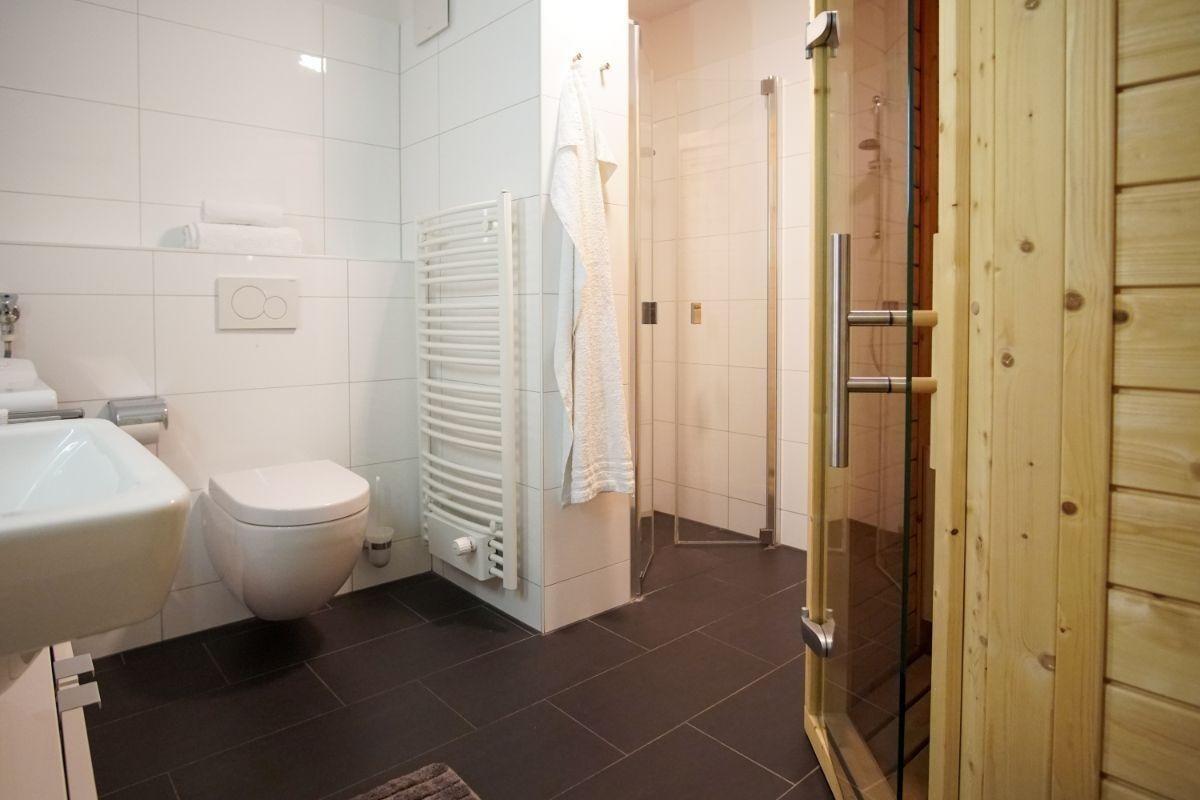 Im Badezimmer machen eine geräumige Dusche und eine Sauna, dies zu Ihrer ganz persönlichen Wellness-Oase, eine Fußbodenheizung sorgt hier für Ihr Wohlbefinden.