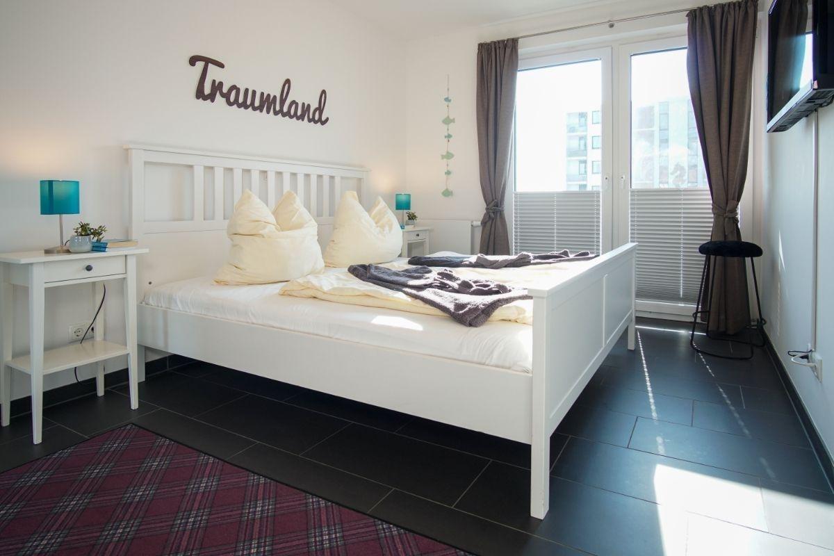 Die beiden Schlafzimmer verfügen über ein Doppelbett bzw. zwei Einzelbetten, so dass die Wohnung auch sehr gut mit vier erwachsenen Personen belegt werden kann sowie jeweils ein zusätzliches TV-Gerät.