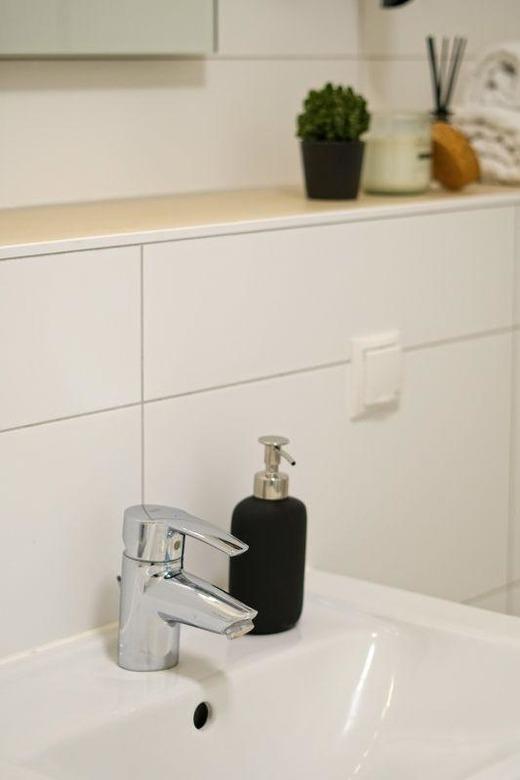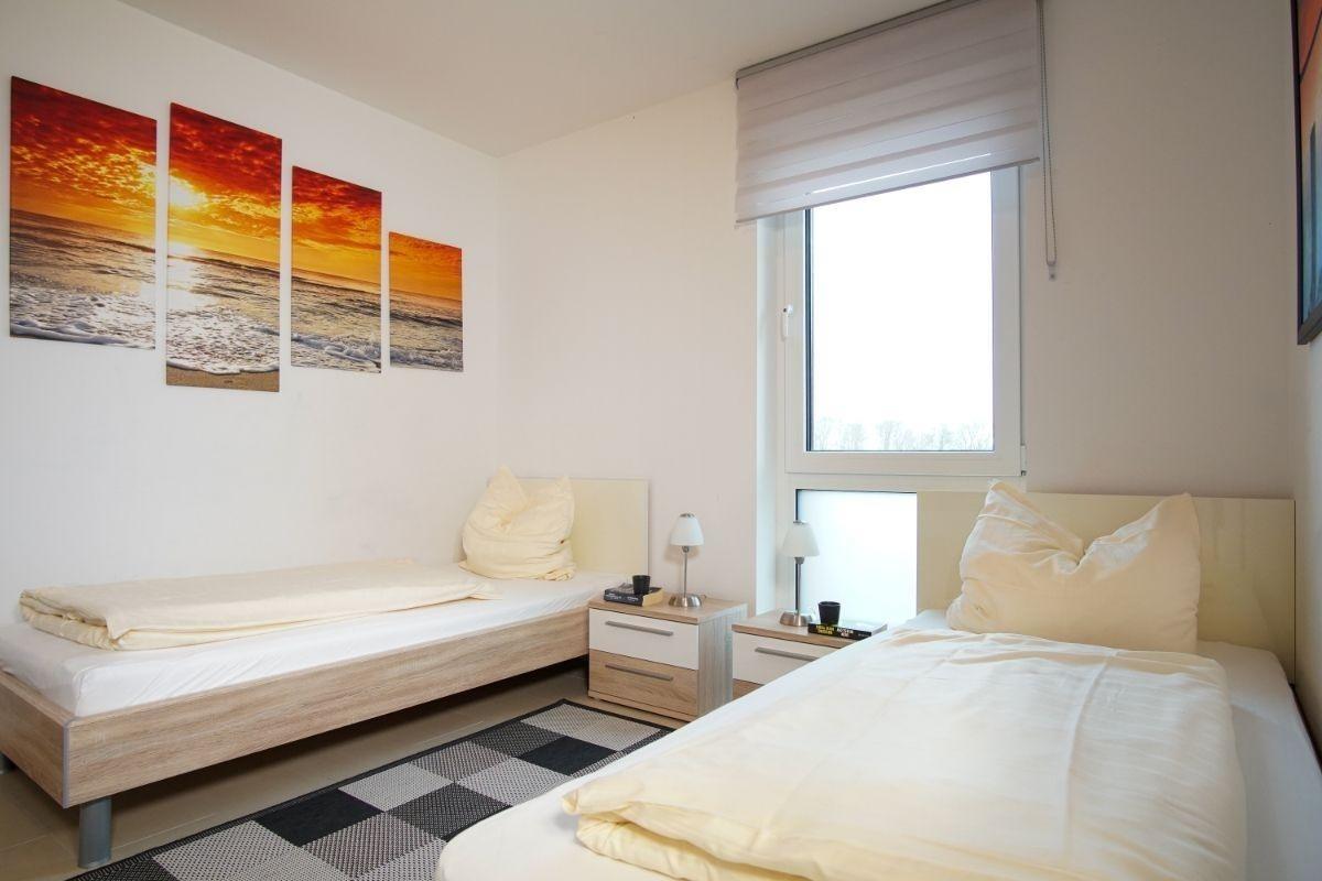 Das große Schlafzimmer verfügt über ein gemütliches Doppelbett (160*200cm). Das zweite Schlafzimmer ist mit zwei Einzelbetten und einem geräumigen Schrank eingerichtet. Das Badezimmer ist mit einer ebenerdigen Dusche mit Glastrennwand, Waschmaschine und einem Handtuchheizkörper ausgestattet.