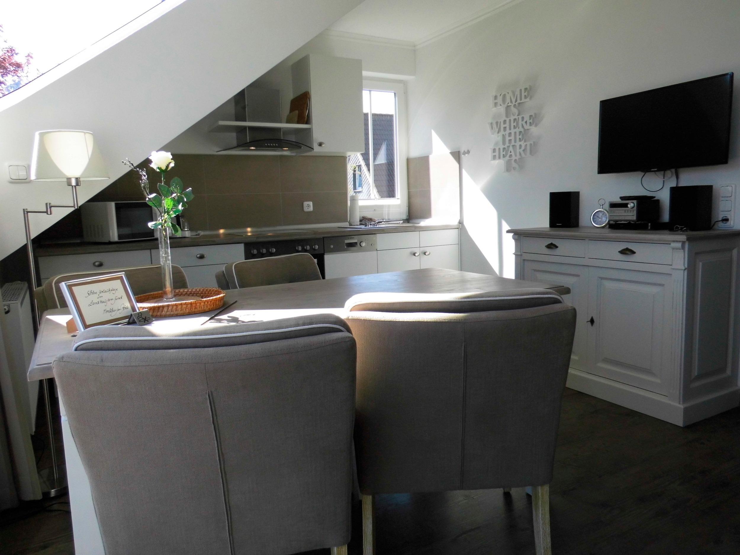 Wie in allen unseren Apartments haben wir auch hier eine hochwertige geschmackvolle Ausstattung im modernen Landhaus Stil. Eigene Parkplätze sind vorhanden.