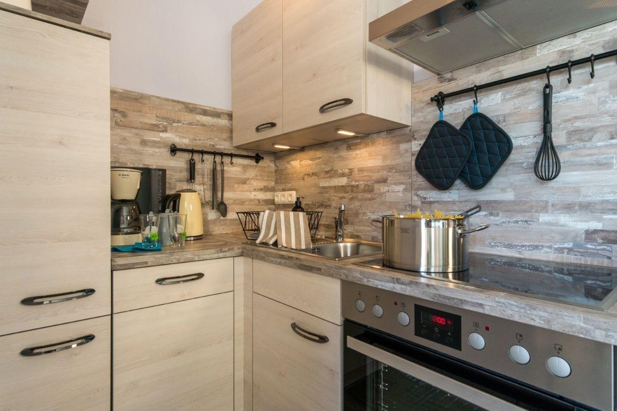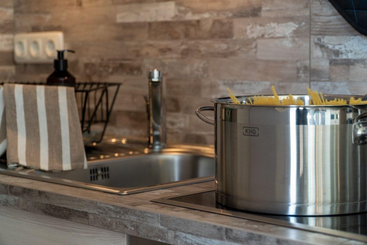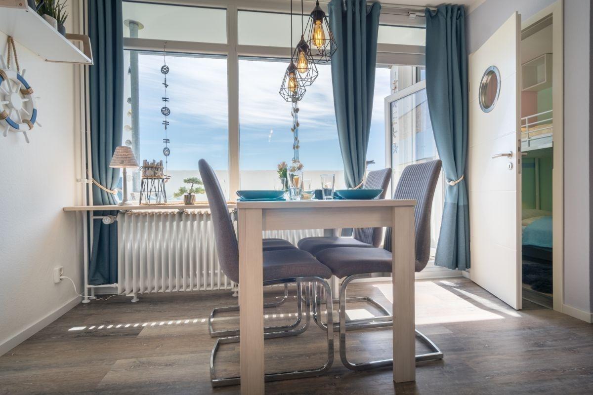 Die zuletzt 2021 modernisierte 45m²-Wohnung verfügt über einen großzügigen Wohn-Schlafbereich mit einem komfortablen Doppelbett im hinteren Bereich, einer gemütlüchen Sofaecke mit Flatscreen-TV und der Essecke für vier Personen. Der offene Küchenbereich ist, für den Urlaubsbedarf, voll ausgestattet. Außerdem stehen Ihnen noch ein Backofen und ein Geschirrspüler zur Verfügung. Das angrenzende Kinderzimmer verfügt über ein Etagenbett und ist auch für Teenager geeignet.
