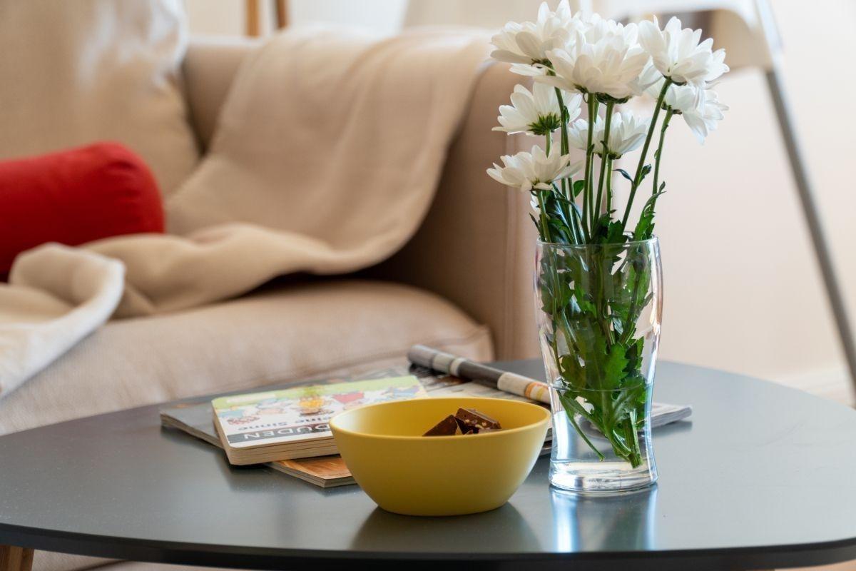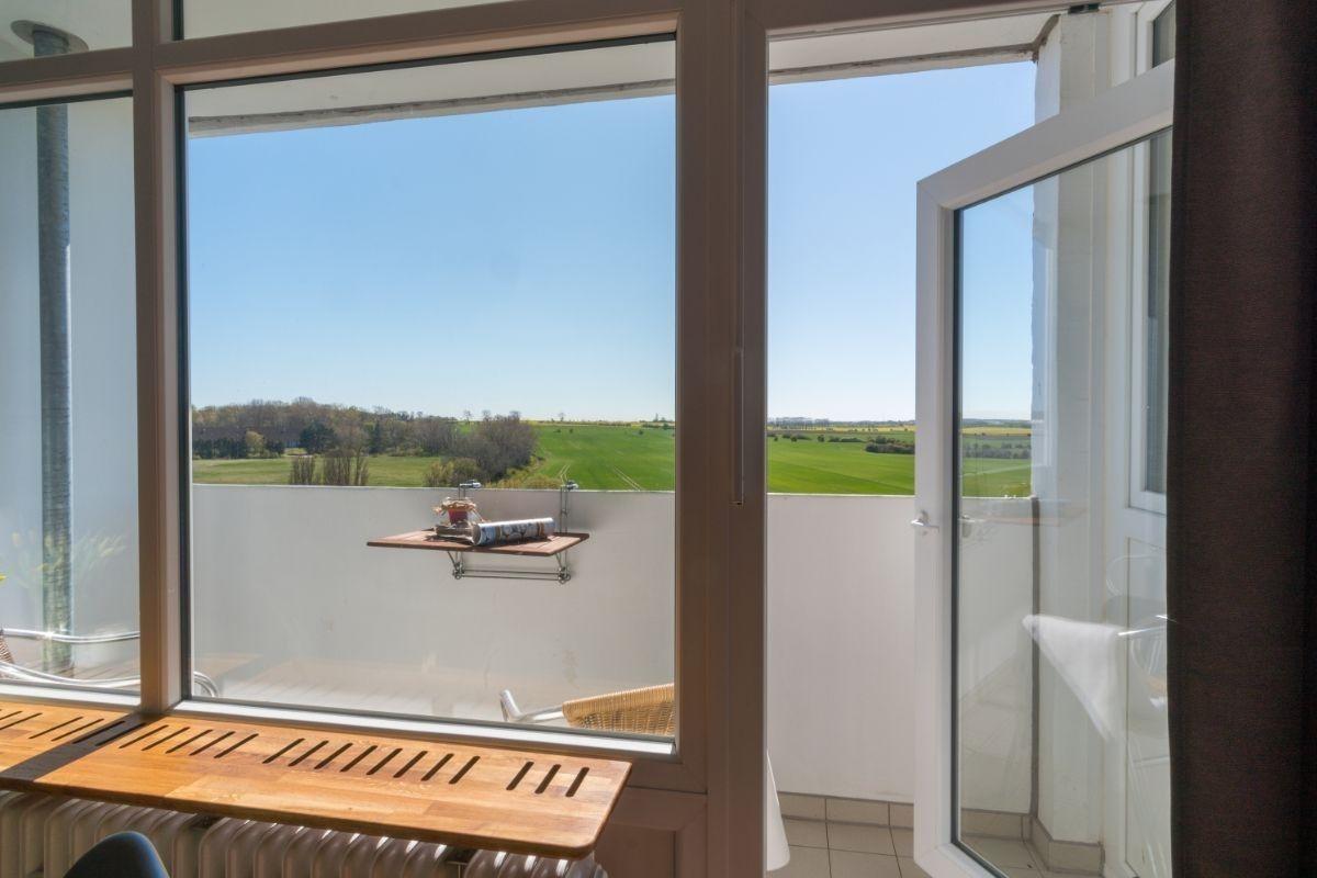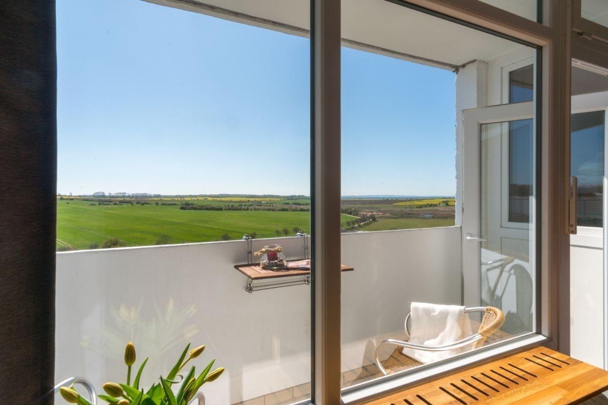 Genießen Sie den atemberaubenden Blick über die Rapsfelder bis hin zu Steilküste ... so kann man im Urlaub richtig entspannen. Die zuletzt 2021 modernisierte 45m²-Wohnung verfügt über einen großzügigen Wohn-Schlafbereich mit einem komfortablen Doppelbett im hinteren Bereich, einer gemütlichen Sofaecke mit Flatscreen-TV und der Essecke für vier Personen. Der offene Küchenbereich ist, für den Urlaubsbedarf, voll ausgestattet. Zusätzlich stehen Ihnen noch ein Backofen und ein Geschirrspüler zur Verfügung. Das angrenzende Kinderzimmer verfügt über ein Etagenbett (75x180). Außerdem sind fast alle Steckdosen mit einer Kindersicherung versehen.