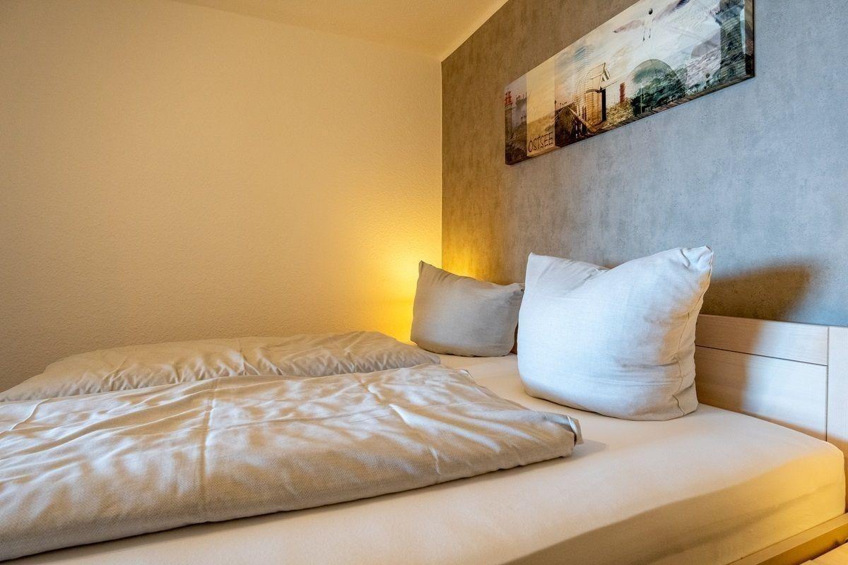 Die zuletzt 2021 modernisierte 45m²-Wohnung verfügt über einen großzügigen Wohn-Schlafbereich mit einem komfortablen Doppelbett im hinteren Bereich, einer gemütlichen Sofaecke mit Flatscreen-TV und der Essecke für drei Personen. Der offene Küchenbereich ist, für den Urlaubsbedarf, voll ausgestattet. Das angrenzende Kinderzimmer verfügt über ein gemütliches Einzelbett und ist auch für Erwachsene geeignet.