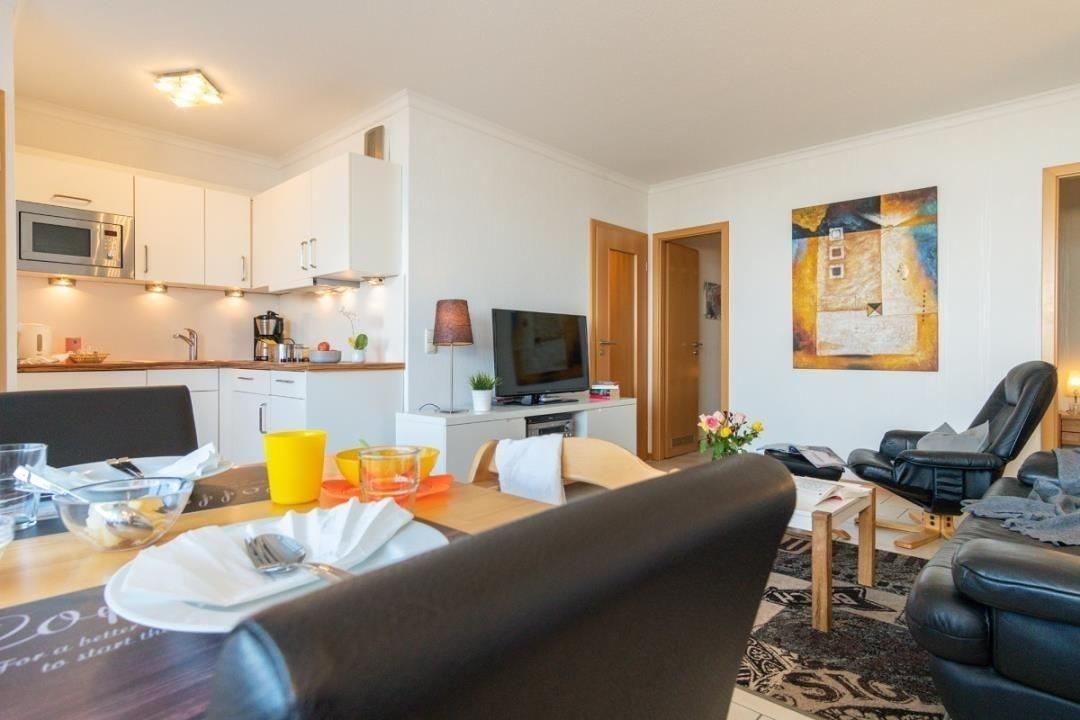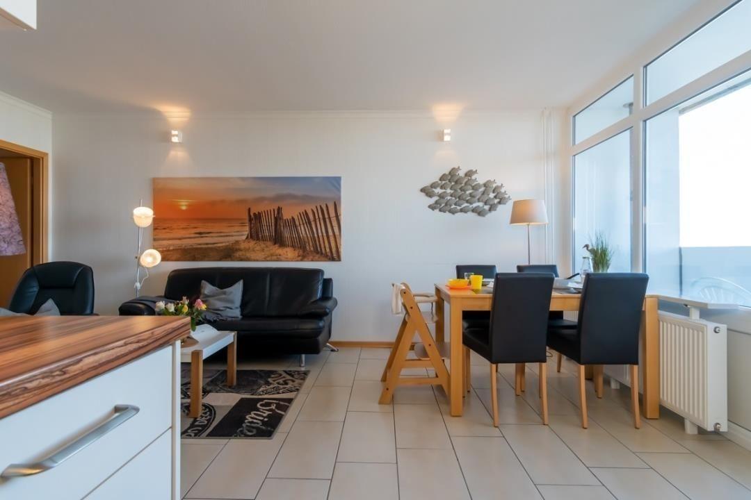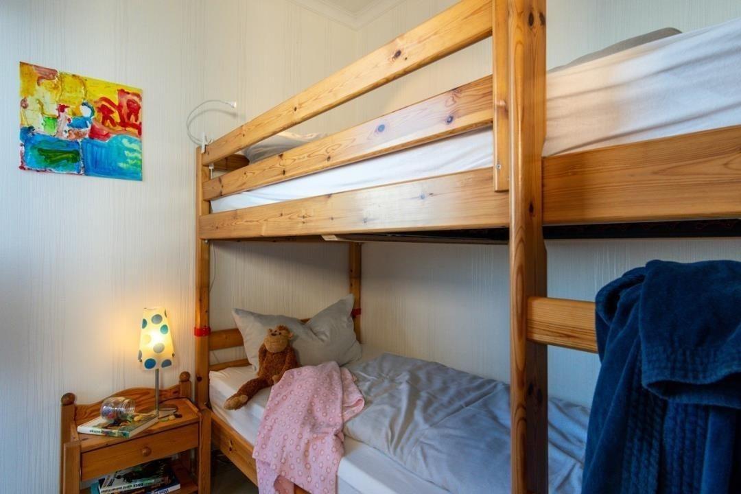 Die renovierte 2-Zimmer-Wohnung wurde zuletzt 2021 liebevoll modernisiert und verfügt über ein helles Wohnzimmer mit einer gemütlichen Sofaecke und eine großzügige Essecke. Das angrenzende Alkoven-Schlafzimmer ist mit einem Doppelbett ausgestattet. Für die Urlaubsgarderobe steht Ihnen im Flur ein großzügiger Kleiderschrank zur Verfügung. Das Kinderzimmer ist mit einem Etagenbett für zwei Kinder (auch für Teenager geeignet) eingerichtet und befindet sich neben der Küche. Die Küchenzeile wurde ebenfalls modernisiert und ist für Urlaubsbedürfnisse voll ausgestattet - ein Geschirrspüler ist ebenfalls vorhanden.