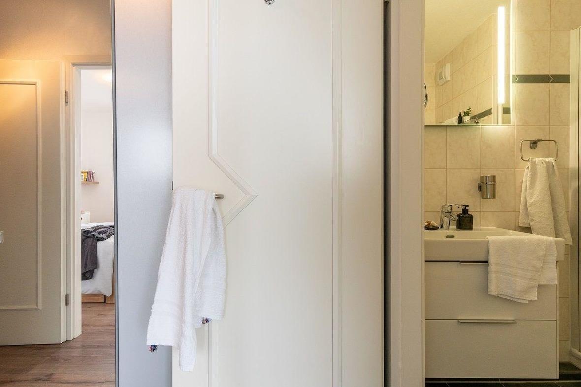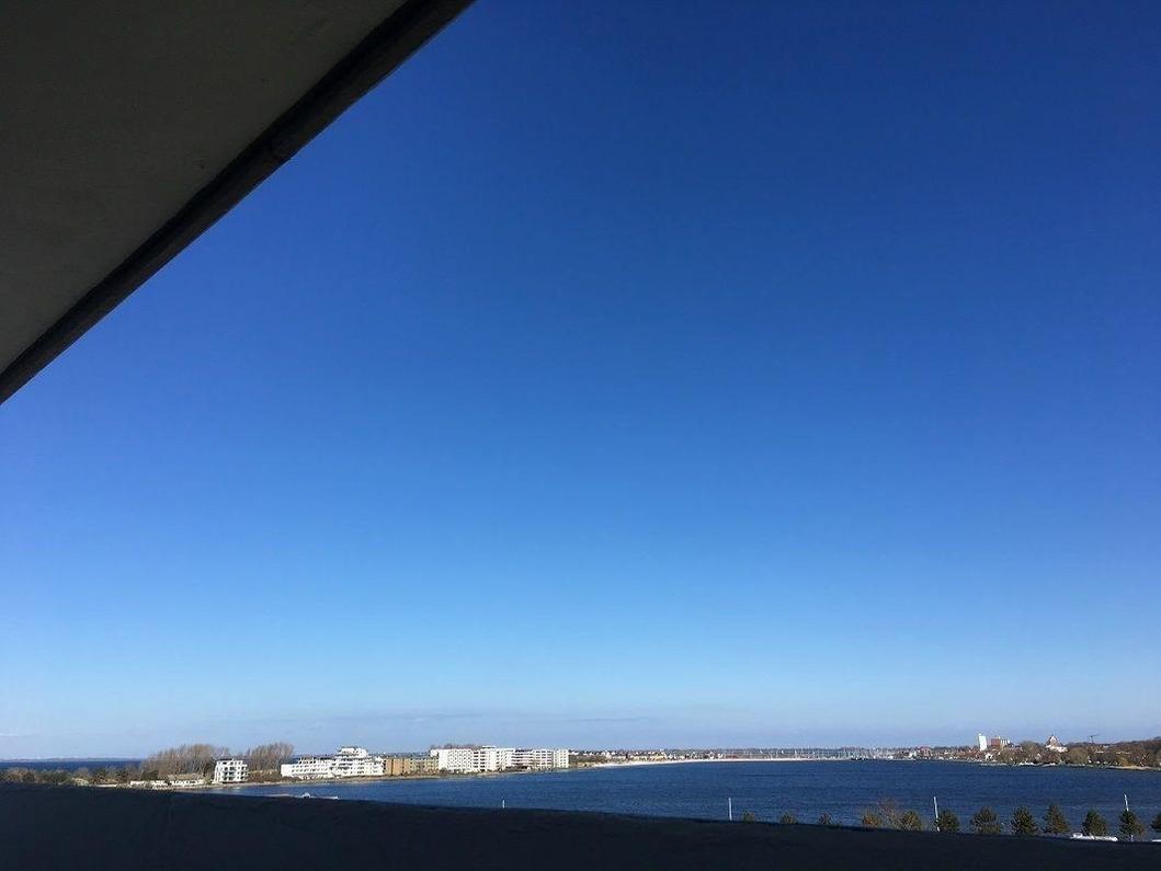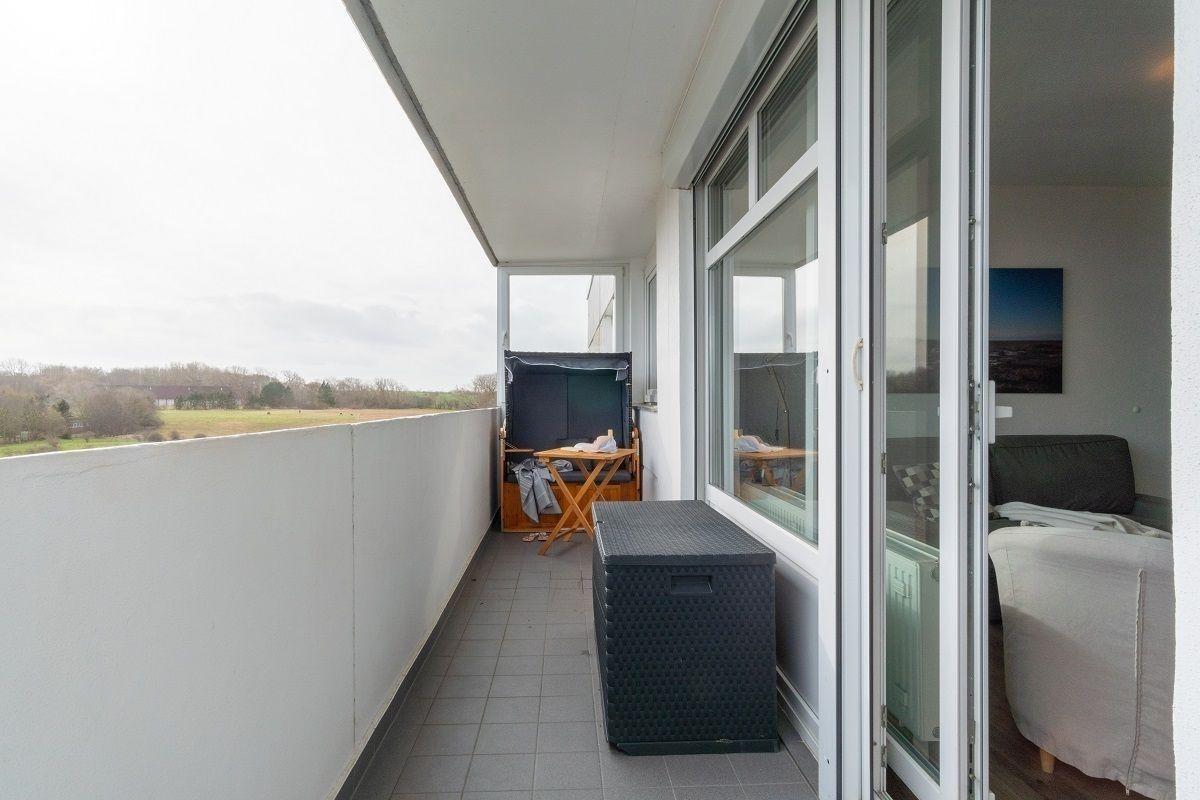 Am Wohnbereich grenzt der große Balkon (Süd-Ausrichtung) seitlich zum Binnensee.