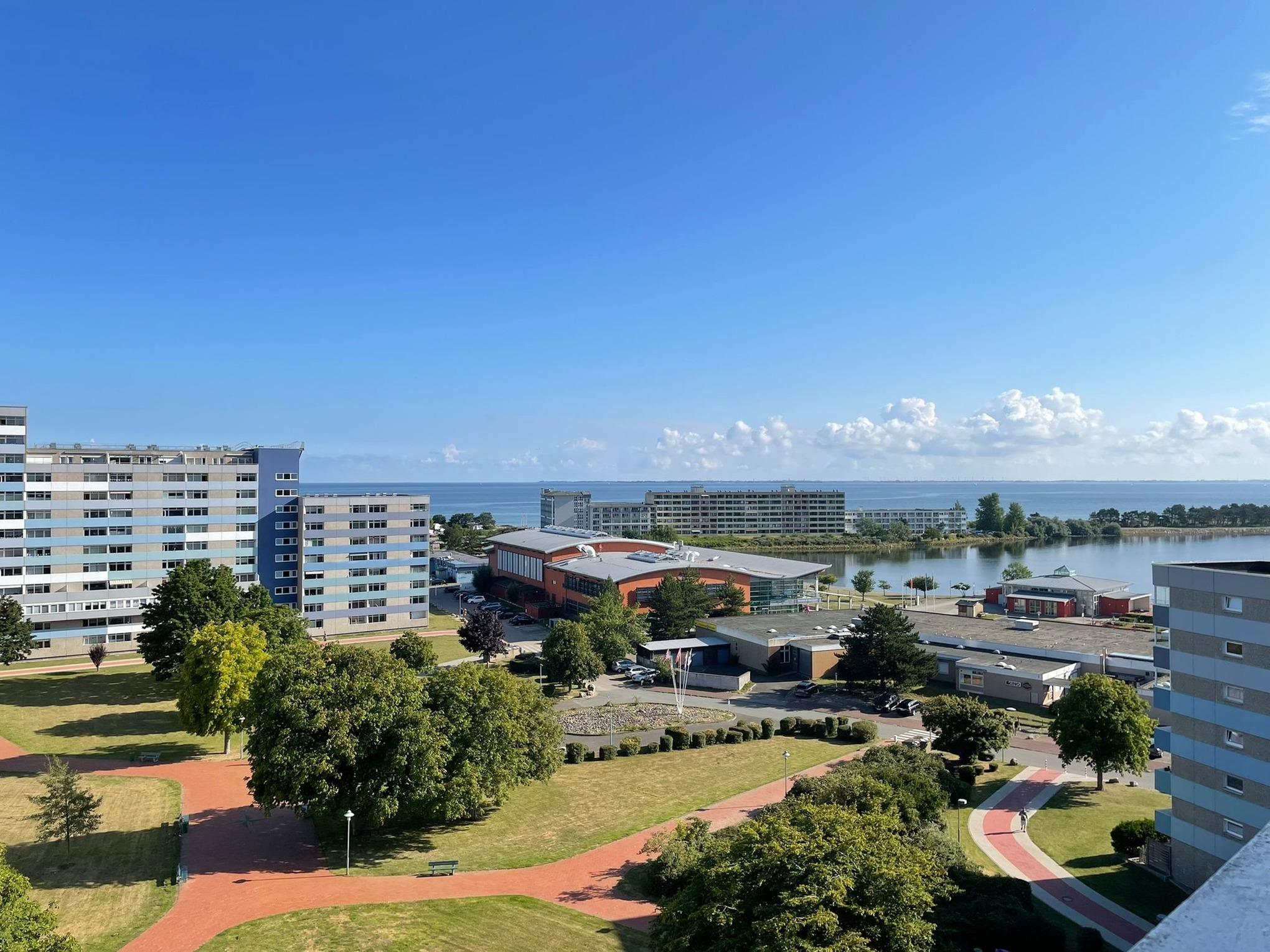 Moderne Ferienwohnung mit Seeblick im 9. Stock des Ferienparks Heiligenhafen.