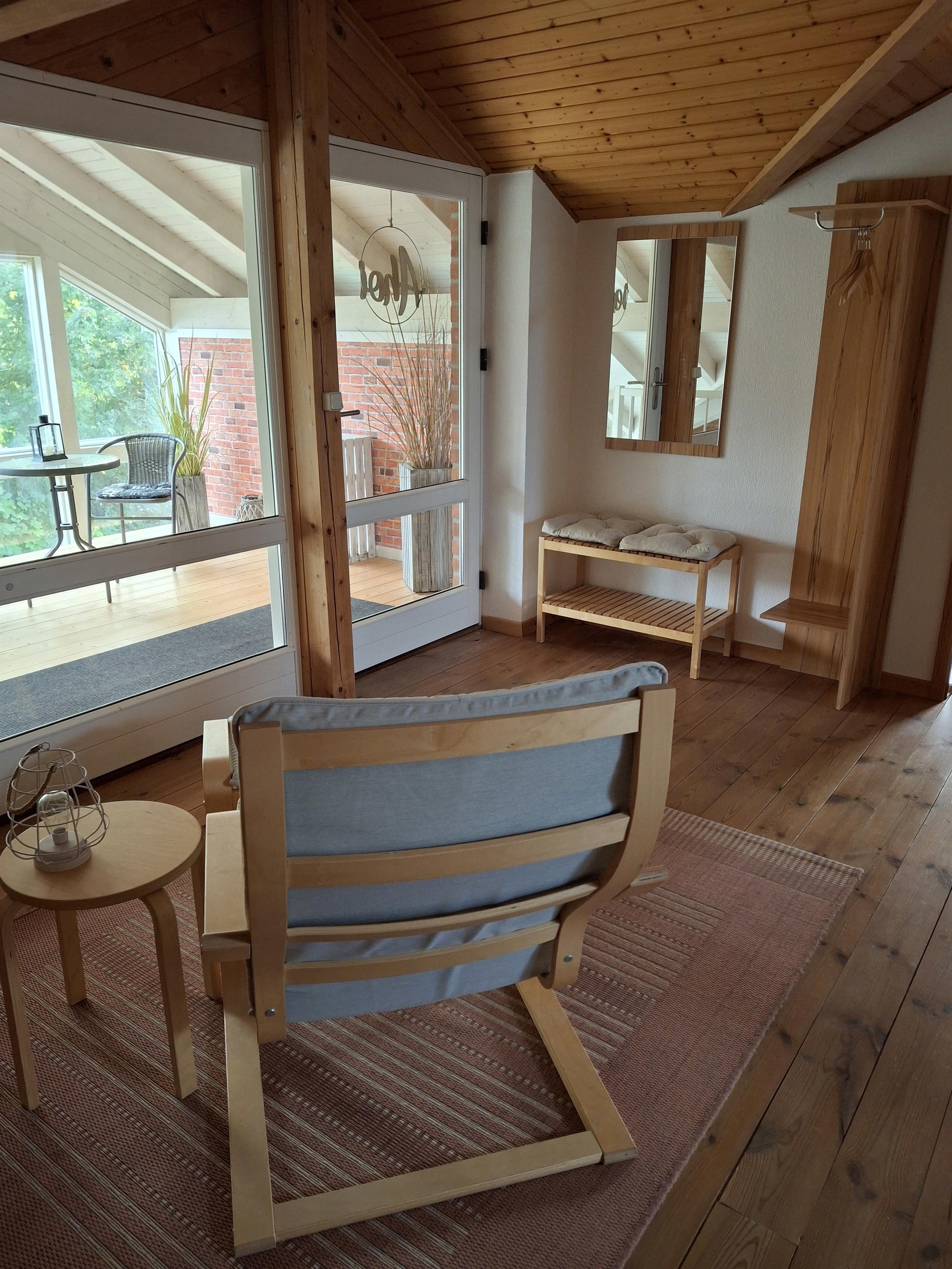 Moderne Ferienwohnung in Heiligenhafen mit Wintergarten, eigenem Garten und hochwertiger Ausstattung für erholsamen Urlaub.