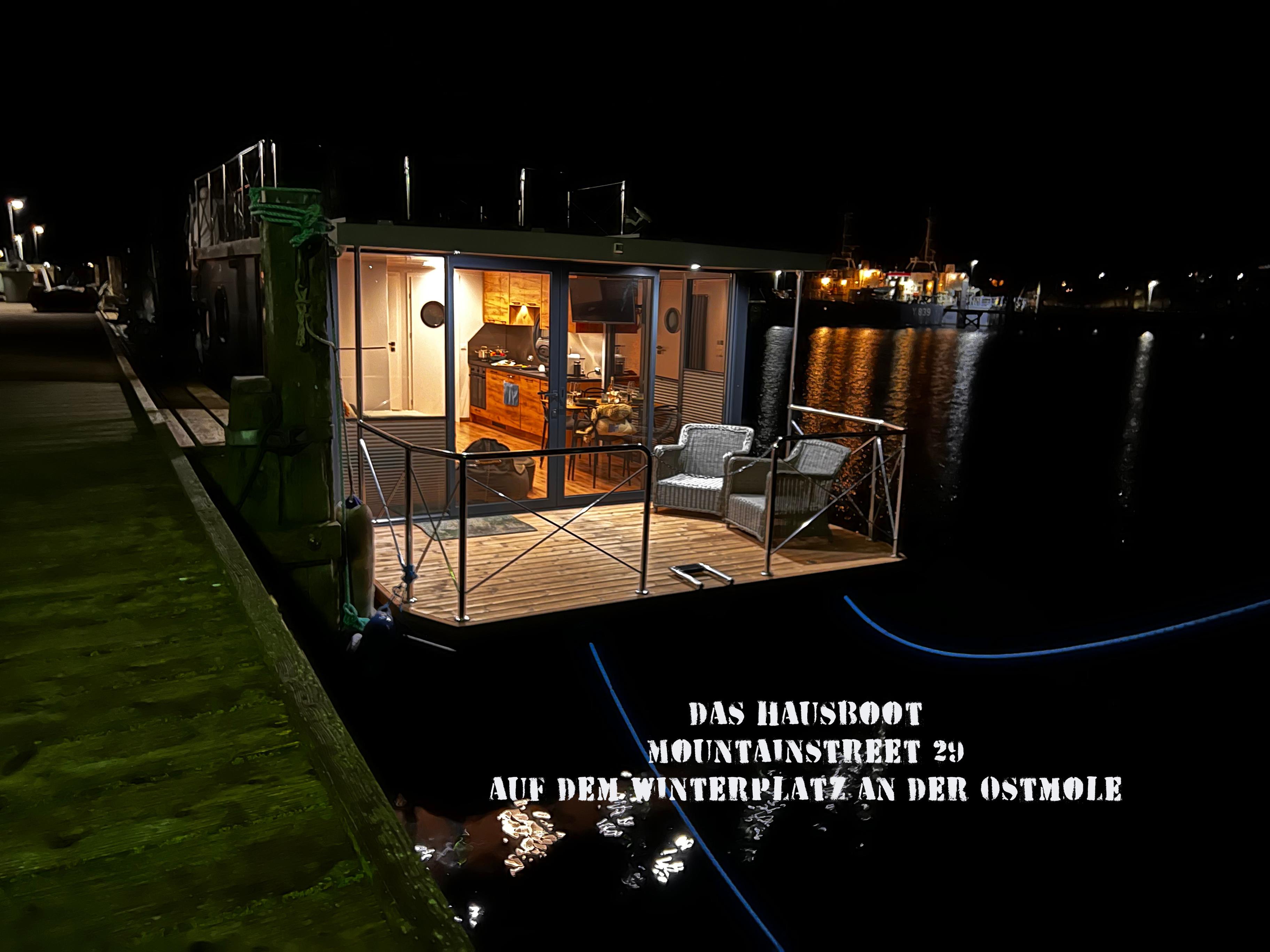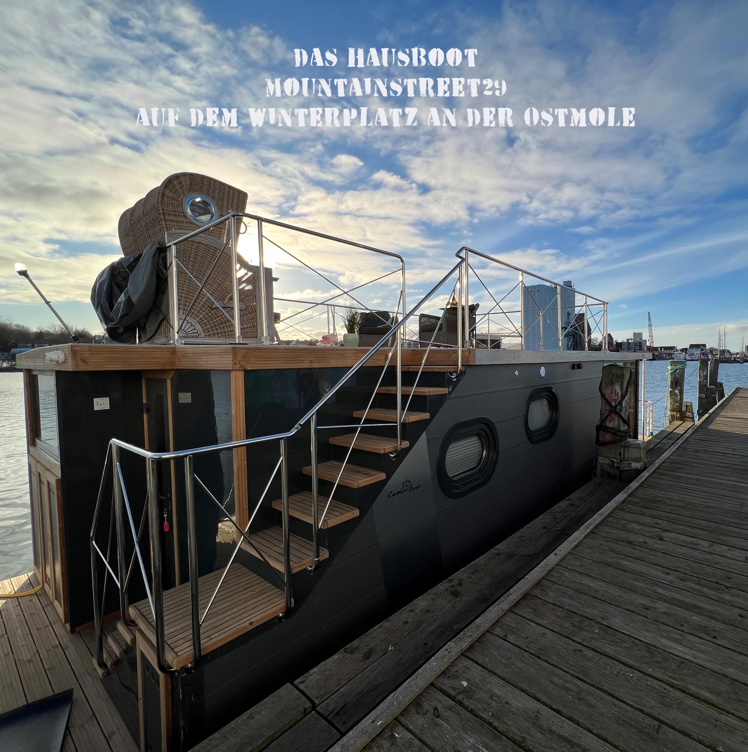 Das Hausboot liegt in der Zeit vom 01.11. - 01.04. auf dem Winterplatz an der Ostmole.