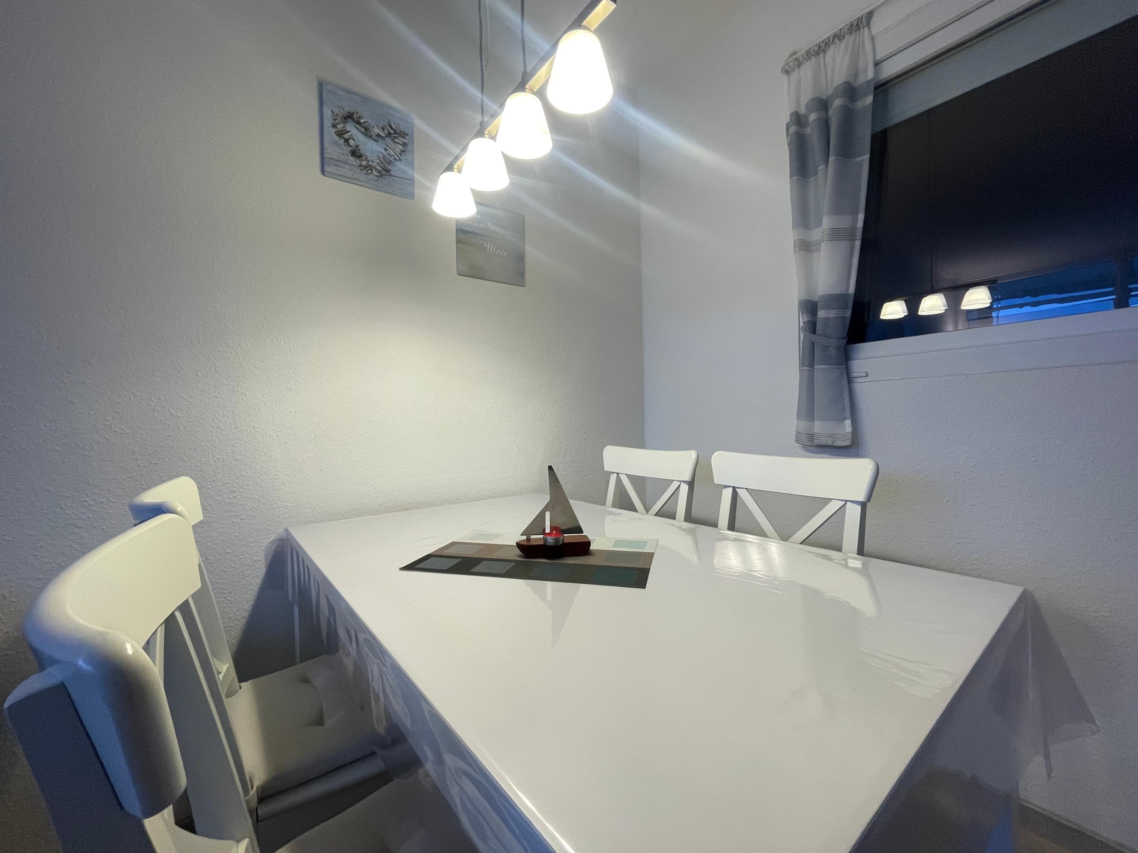 Die Wohnung verfügt über eine Wohnfläche von 45 qm mit folgender Aufteilung: Wohn-Esszimmer mit Smart-TV-Flachbildschirm, separater Elternschlafraum mit Doppelbett (180 x 200), sep. Kinderzimmer mit Etagenbett, neues Bad mit WC und Duschkabine sowie eine komplett eingerichtete Küche mit Kühlschrank incl. Gefrierfach, 4-Platten-Ceran sowie Multifunktionsmikrowelle mit Heißluft und Grill. Geschirrspülmaschine, Waschmaschine und kostenloses WLAN sind gleichfalls vorhanden.